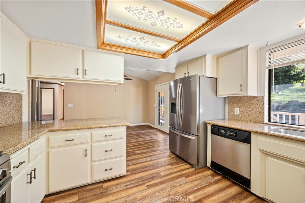 Six-bedroom home or duplex—you decide. Set on nearly half an acre in Paso Robles, this versatile property offers a rare blend of space, functionality, and upgrades just minutes from downtown and Highway 101. Configured with five bedrooms plus a bonus room, the layout easily adapts to a variety of living needs, including the option for separate upstairs and downstairs living areas. The lower level features its own private entrance and electrical in place for a future kitchenette—ideal for extended family, guests, or flexible living arrangements. Upstairs, the main living area is bright and inviting, featuring a wood-burning fireplace and an updated kitchen with granite countertops, refreshed cabinetry, a Samsung WiFi-enabled 5-burner range with air fryer, and a newer refrigerator. A Stiltz wheelchair-accessible elevator provides seamless access between both levels. Significant upgrades throughout include waterproof vinyl plank flooring, fresh interior paint, a tile roof, 30 owned solar panels, upgraded HVAC, tankless water heater, whole-house fan, central vacuum, and a lifetime leaf-filter gutter system. Outside, a front-yard fountain enhances curb appeal, while the backyard offers mature redwood and fruit trees with drip irrigation for easy maintenance. A spacious driveway with 30-amp RV hookups completes this well-rounded Paso Robles property.