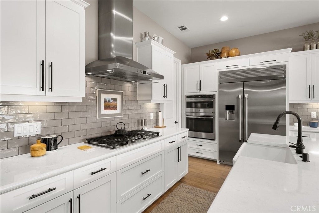 - AppliancesSixBurnerStove, Built-In Range, Dishwasher, Gas Cooktop, Disposal, Gas Range, High Efficiency Water Heater, Microwave, Refrigerator, Range Hood, Tankless Water Heater, Water To Refrigerator, Water Heater