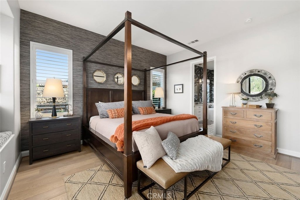 Modern Ranch meets California Coastal in this exquisitely upgraded Ventana floorplan, perfectly positioned to capture sweeping views of the vineyards, the shimmering lake and fountain, and the mountain range that frames the horizon. From sunrise to sunset, the scenery becomes a stunning natural backdrop—ever changing and always captivating. The home’s exceptional curb appeal sets an immediate impression of quality. Fresh exterior paint, stone-accented retaining walls, and a beautifully designed paver courtyard with a tranquil fountain create a welcoming entry that reflects the care and attention invested throughout the property. Inside, the chef’s kitchen features stylish white cabinetry with premium hardware, quartzite slab countertops, a generous island, a built-in refrigerator, and stainless appliances with a sleek range hood. The kitchen opens seamlessly to the great room, where a dramatic floor-to-ceiling stacked-stone fireplace adds warmth and architectural presence. Professionally designed interiors elevate every room. Automatic window treatments, plantation shutters, oak hardwood floors, and wallpaper-accented rooms create a sophisticated aesthetic. The optimized Smart-Space laundry room enhances convenience with custom cabinetry, a sink, and a built-in desk area along with a bay of cabinets in the garage for added storage. The outdoor living experience is a true highlight of this home. The covered patio functions as an additional living room, offering year-round comfort with a drop-down shade and generous space for dining or lounging. Beyond, paver pathways lead to a peaceful sitting area with built-in firepit overlooking the lake and fountain—an ideal vantage point to enjoy the reflection of the sun on the water and the dramatic silhouette of the mountains as the sky shifts throughout the day.