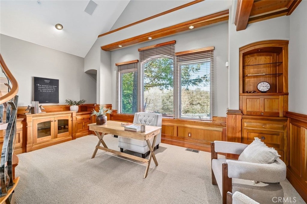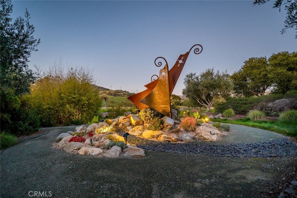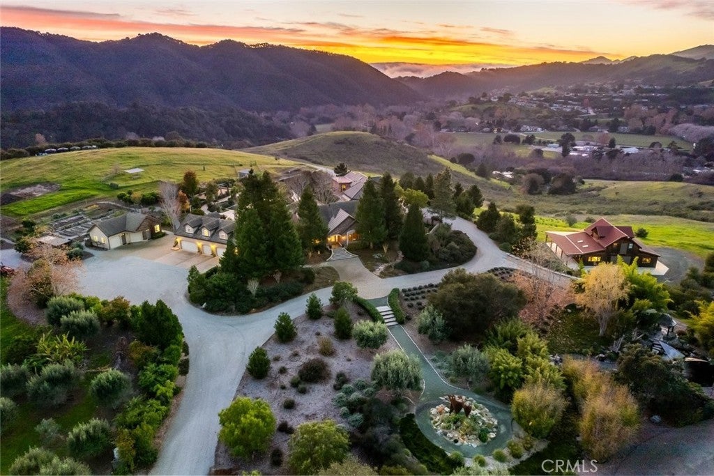 Wind Dance Estate is a rare multigenerational offering set on approximately 40 acres in the heart of Avila Valley, one of the Central Coast’s most desirable coastal locations. Properties of this scale, privacy, and versatility are seldom available so close to Avila Beach and downtown San Luis Obispo. Thoughtfully developed over decades, the estate blends architectural depth, water resources, agricultural productivity, and lifestyle flexibility, all framed by sweeping panoramic valley views. The main residence offers approximately 5,500 sq ft of architecturally rich living space with a thoughtful separation of public entertaining areas and private living quarters. Features include a stone wood-burning fireplace, a light-filled glass conservatory for year-round indoor–outdoor living, an open kitchen with distinctive ceiling detail, a richly paneled library, studio, handcrafted cabinetry and counters, cherry wood finishes sourced from a single lot, tall, angled ceilings, a sculptural staircase, and multiple connections to outdoor living areas. Designed for true multigenerational living, the estate includes an attached yet fully independent secondary residence of approximately 3,100 sq ft with 3 bedrooms and 3 baths, plus a downstairs bonus room. This residence features a private entrance, high ceilings, skylights, expansive windows, bedroom lofts, and a private deck with peaceful wildlife and night-sky views. Additional living spaces include a 1-bedroom, 1-bath apartment of approximately 1,100 sq ft above the main residence’s five-car garage, and a studio-style apartment of approximately 960 sq ft above the barn, ideal for guests, caretakers, or creative use. The land is both beautiful and productive, featuring established avocado and olive orchards, gardens, and open acreage well suited for farming and livestock raising. Outdoor amenities include a resort-style pool and spa, a tranquil koi pond and waterfall, and curated art installations and sculptural elements throughout the grounds. Rolling hills, eucalyptus groves, redwoods, ocean peek views, a designated wildlife corridor, and a dark-sky environment complete the setting. Water resources include a private well, storage tanks, rainwater catchment feeding a lined pond, neighborhood water rights, and grid-tied solar, supported by a multi-use barn, farm shop, and estate-scale infrastructure.