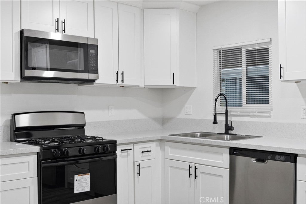 Experience modern sophistication in this 1,344 sq ft manufactured home featuring 3 bedrooms and 2 bathrooms. The sleek kitchen is outfitted with stainless steel appliances, stunning quartz countertops, and ample storage. In the bathrooms, modern black mirrors and contemporary light fixtures create a refined atmosphere with new built in showers. Enjoy premium community amenities such as a sparkling pool, gym, game center, soccer and basketball courts, and a clubhouse with a full kitchen and recreational room. There's even a playground and dog station, ensuring delight for every family member. This home combines comfort with a vibrant community lifestyle. The vibrant neighborhood ambiance ensures that you will not only enjoy your home but also a dynamic and engaging community experience.