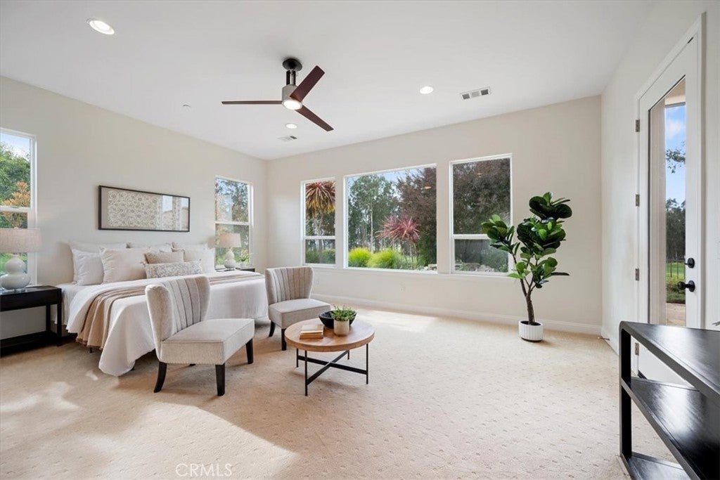 - Interior FeaturesBreakfast Bar, Breakfast Area, Ceiling Fan(s), Separate/Formal Dining Room, High Ceilings, Open Floorplan, Pantry, Quartz Counters, Recessed Lighting, Wired for Sound, All Bedrooms Down, Walk-In Pantry, Walk-In Closet(s)