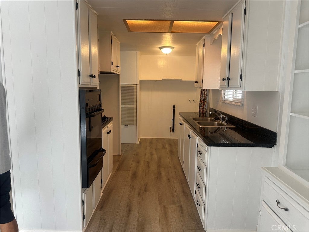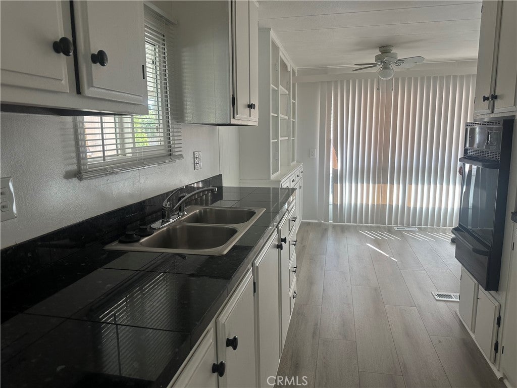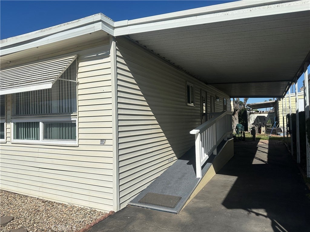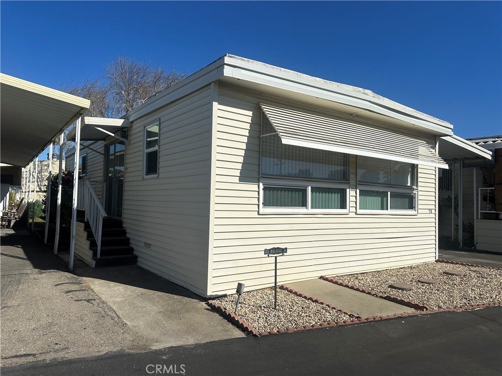 This cute 2-bedroom, 1-bath manufactured home offers approximately 806 sq. ft. of comfortable living space and is perfect for a first-time homebuyer. Located in Del Cielo Mobile Home Community, an ALL AGE PARK. this home features fresh interior paint, newer flooring, and new blinds throughout. Enjoy a spacious living and dining area complete with a charming built-in hutch, adding both character and functionality. Clean, simple, and move-in ready, this home offers an affordable opportunity to step into homeownership. The monthly space fee is 995 Financing available