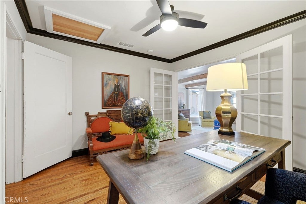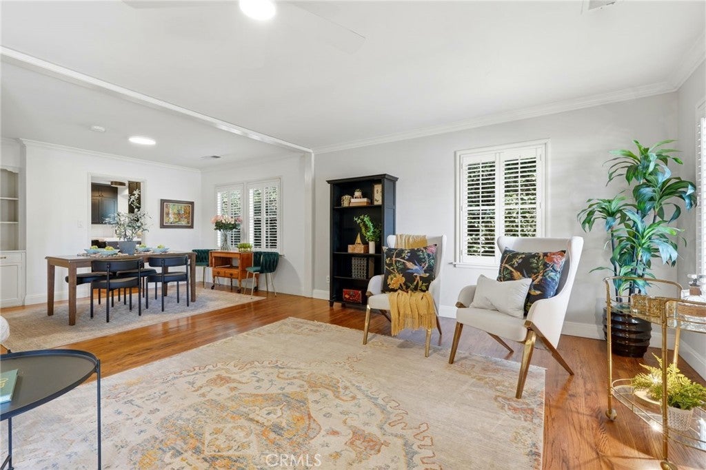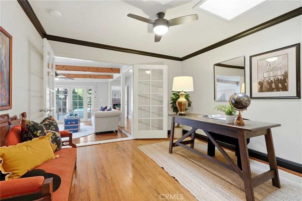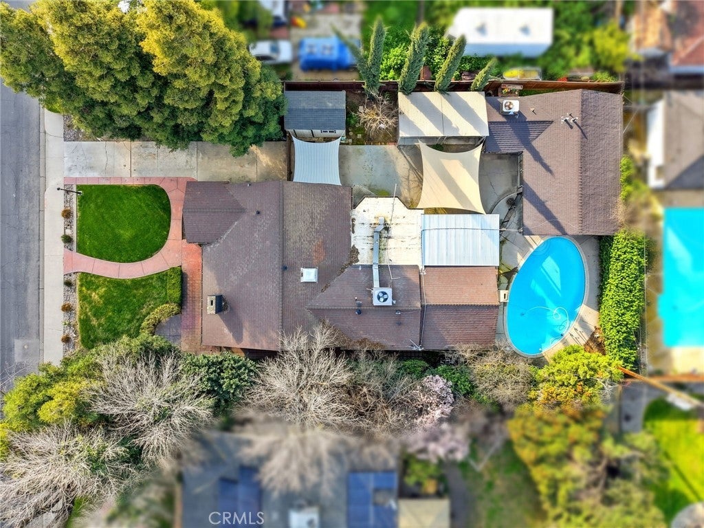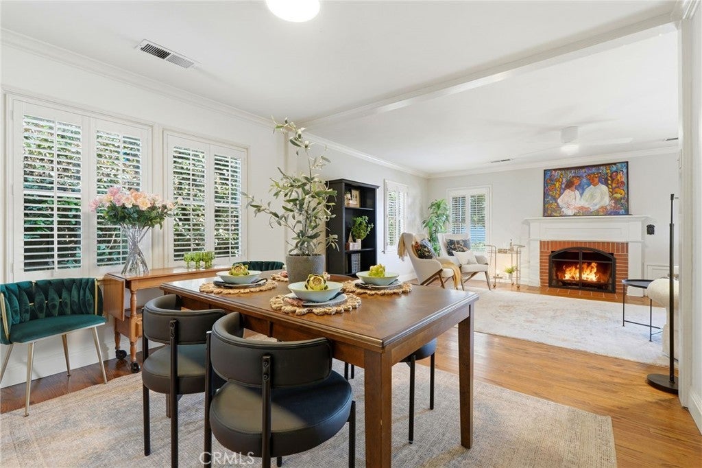 Timeless 1940s charm meets modern comfort at this beautiful home nestled in the heart of Visalia’s beloved Beverly Glen neighborhood. Every space in this home reflects the craftsmanship and character that makes homes in this neighborhood so special - thoughtfully maintained while offering the functionality! Step inside to find rich wood floors, plantation shutters, detailed molding, and abundant natural light throughout. The formal living room with a cozy fireplace and wood hearth flows into a charming dining room with built-in bookcase, while the kitchen features a professional 6-burner gas range, stainless steel appliances, wood bar and countertops, and a built-in dining booth, all opening to a spacious family room with French doors leading outside.The primary suite offers a peaceful retreat with its own brick fireplace, French doors to the backyard, and an updated en suite bath complete with dual pedestal sinks and a custom tile shower. Two additional bedrooms, a dedicated office space, and generous storage provide flexibility for everyday living. Step outside to your own private oasis featuring a built-in pool, covered patio, and mature surroundings ideal for entertaining or unwinding. The detached guest house includes a bedroom area, bathroom, kitchenette, private covered patio, and laundry room, perfect for extended family, visitors, or flexible living arrangements. This is a rare opportunity to own a piece of Visalia charm in one of its most quaint and cherished neighborhoods. Main home square footage is 2,030 according to public records. The ADU is 490 square foot. Main home is 3 bedrooms and 2 bathrooms. ADU has one room, kitchenette, one bathroom and laundry room.