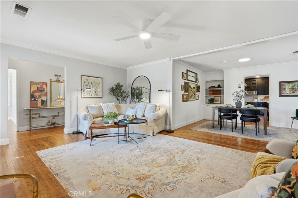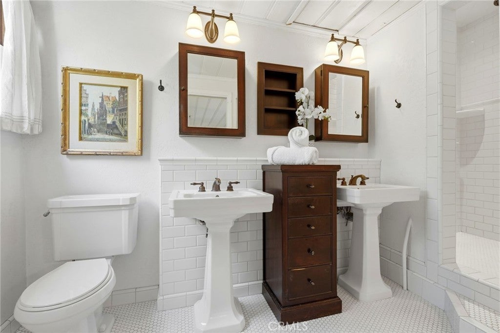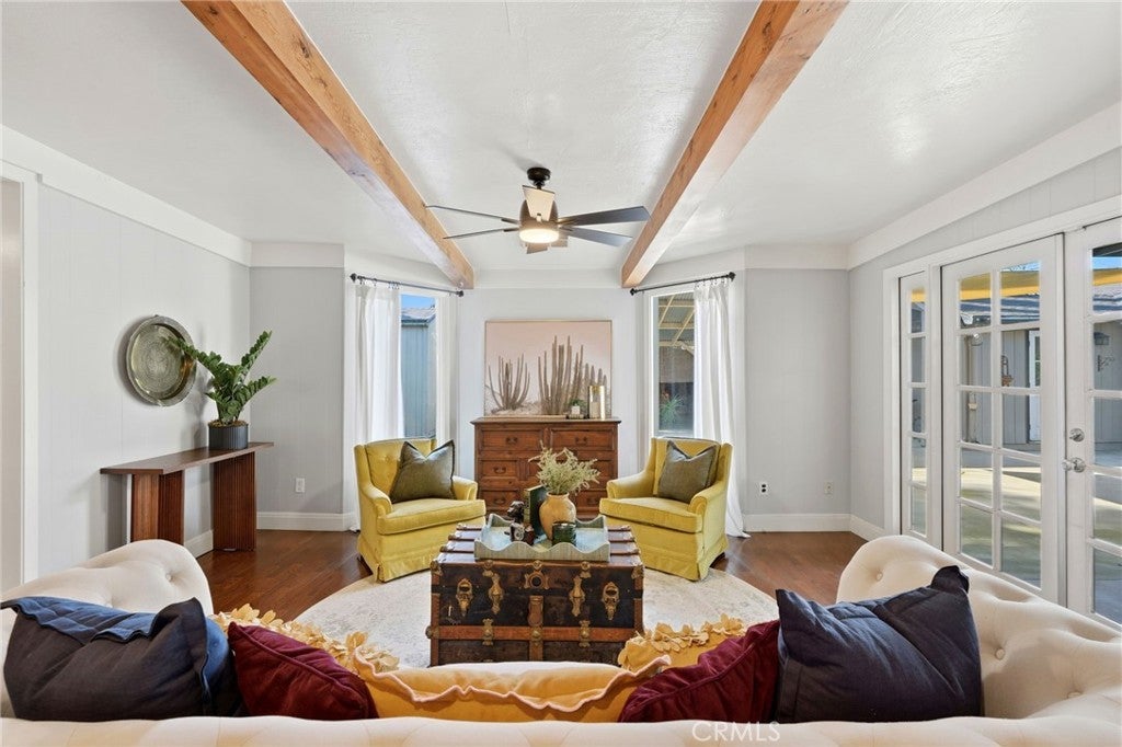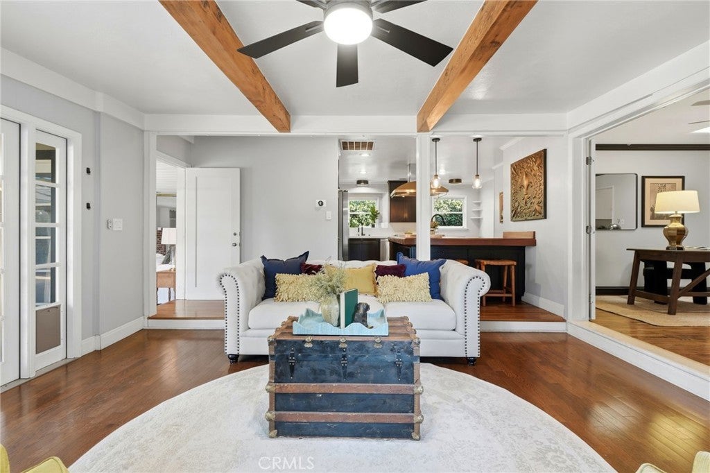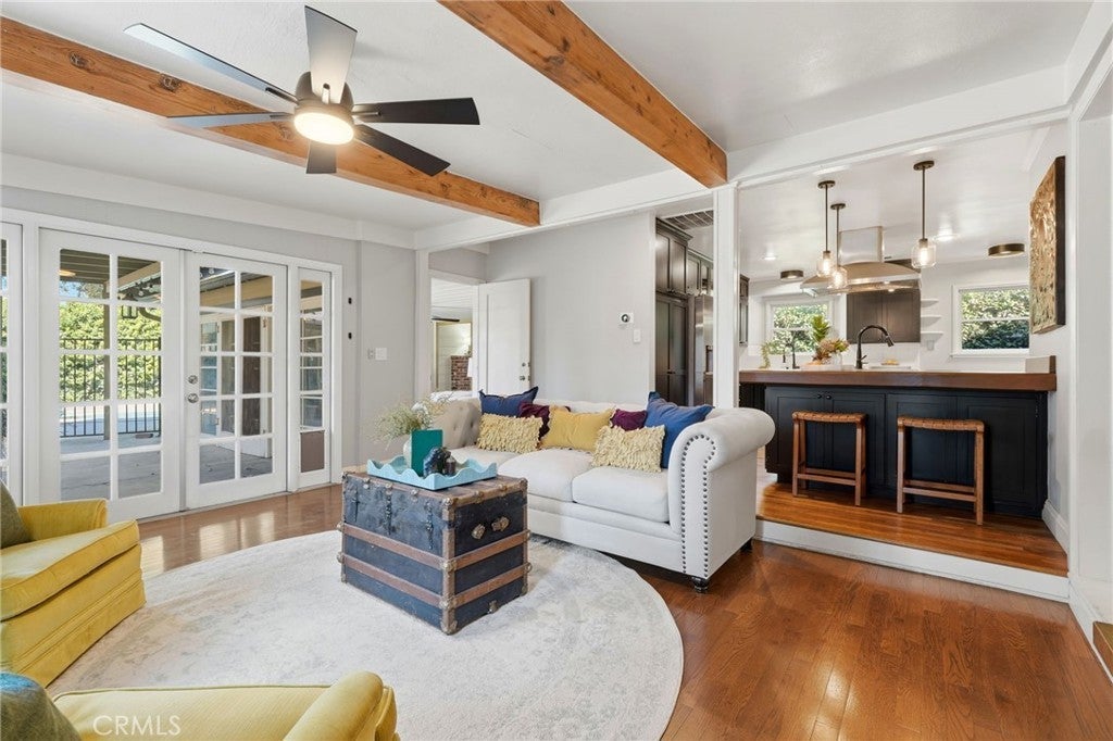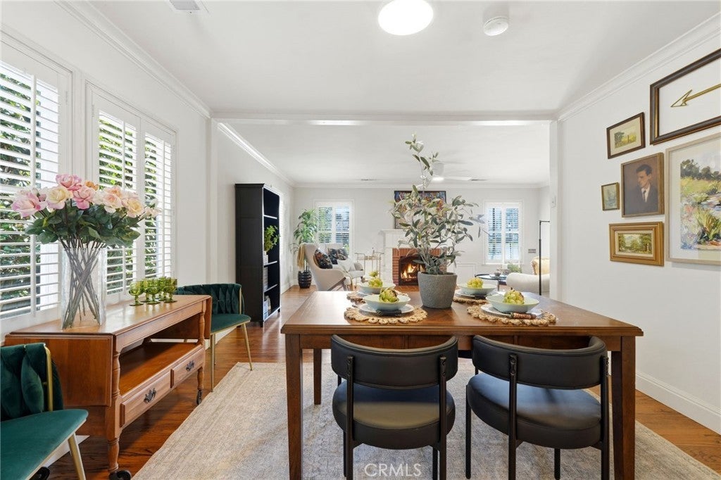 Timeless 1940s charm meets modern comfort at this beautiful home nestled in the heart of Visalia’s beloved Beverly Glen neighborhood. Every space in this home reflects the craftsmanship and character that makes homes in this neighborhood so special - thoughtfully maintained while offering the functionality! Step inside to find rich wood floors, plantation shutters, detailed molding, and abundant natural light throughout. The formal living room with a cozy fireplace and wood hearth flows into a charming dining room with built-in bookcase, while the kitchen features a professional 6-burner gas range, stainless steel appliances, wood bar and countertops, and a built-in dining booth, all opening to a spacious family room with French doors leading outside.The primary suite offers a peaceful retreat with its own brick fireplace, French doors to the backyard, and an updated en suite bath complete with dual pedestal sinks and a custom tile shower. Two additional bedrooms, a dedicated office space, and generous storage provide flexibility for everyday living. Step outside to your own private oasis featuring a built-in pool, covered patio, and mature surroundings ideal for entertaining or unwinding. The detached guest house includes a bedroom area, bathroom, kitchenette, private covered patio, and laundry room, perfect for extended family, visitors, or flexible living arrangements. This is a rare opportunity to own a piece of Visalia charm in one of its most quaint and cherished neighborhoods. Main home square footage is 2,030 according to public records. The ADU is 490 square foot. Main home is 3 bedrooms and 2 bathrooms. ADU has one room, kitchenette, one bathroom and laundry room.