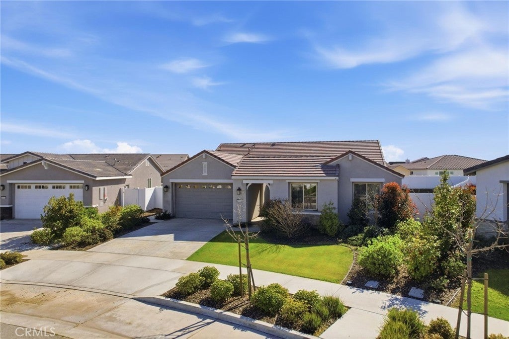 Located in the double-gated Highgate community, this 3-bedroom, 2-bath home offers functional living spaces and an oversized cul-de-sac lot. The layout includes a formal dining room, spacious great room, and a breakfast area adjacent to the kitchen featuring granite counters and stainless steel appliances. Step outside to a gargantuan 9,000+ sq ft lot with additional concrete and a covered patio—providing plenty of space for outdoor living, entertaining, or future customization. Residents of Highgate enjoy walkable streets, multiple parks and recreation areas, a clubhouse, and resort-style pools, all within a highly sought-after gated setting.