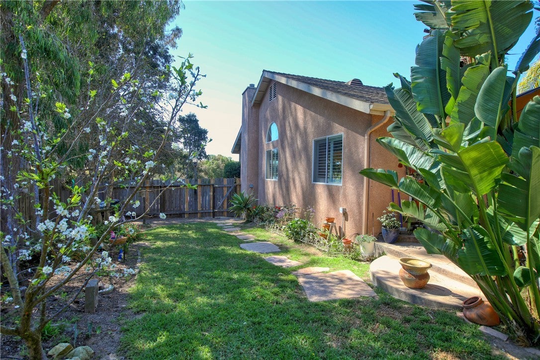 Versatile Nipomo home with income-producing ADU in Mesa View Estates, set on a 10,000 sq ft lot with gated RV parking and neighbors on just two sides. The main residence features vaulted ceilings, hardwood floors, and wood shutters throughout the living areas, with a gas log fireplace anchoring the living room. The kitchen offers a breakfast bar, pantry, and built-in microwave, while a slider off the dining area opens to a beautifully landscaped backyard with a large patio and mature fruit trees. The primary suite includes vaulted ceilings, a gas log fireplace, walk-in closet, and remodeled three-quarter bathroom. A downstairs bonus room, not included in the square footage, provides additional versatile space. The attached two-car garage features epoxy floors, built-in storage, and a workbench, with abundant additional storage beneath the home. The permitted ADU, completed in 2018, includes a bedroom, three-quarter bath, full kitchen, and laundry hookups - most recently rented at $1,700/month. Conveniently located close to town with easy access to shopping, schools, and Central Coast destinations, this property delivers the rare combination of comfortable living, rental income potential, and the flexibility to fit your lifestyle.