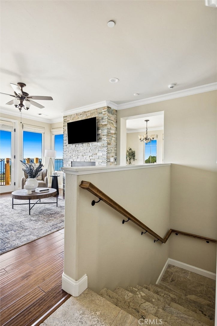 Welcome to Easy Beach Living at its Finest! Beautiful panoramic ocean view home with Accessory Dwelling Unit offers breathtaking point to point vistas of the Pacific Ocean and San Luis Bay, making it the perfect spot to enjoy ocean sunsets from most all rooms and decks. The main level features a luxurious primary suite complete with its own fireplace and a relaxing Jacuzzi tub, cozy balcony, all creating a perfect retreat. In total, the home treasures three gorgeous stone-facia fireplaces, adding warmth and charm throughout its well-designed living space that provides comfort for everyone. Enjoy three spacious bedrooms plus a versatile separate unit with a private entrance, kitchen, bathroom, and stackable washer/dryer, this home offers incredible flexibility. The accessory unit can serve as a separate living space OR A a beautiful fourth bedroom with its own unique functionality. Buyer to check current Pismo Beach ordinance pertaining to ADU usage rules. An elevator provides convenient access from the main floor to the lower-level hallway, where you'll find additional bedrooms and a laundry room, ensuring ease and accessibility throughout the home. Wide hallways. The open concept living area is filled with natural light, ideal for both quiet evenings and entertaining friends. The kitchen is a chef's delight, equipped with top-notch appliances and ample cabinet space, a well-designed step-in pantry, and pantry. Positioned on a lovely nice size lot, the outdoor area is just as inviting. Enjoy dining under the stars or simply soaking in the fresh ocean breeze in your private oasis. The beautifully landscaped yard enhances the home's charm and provides a peaceful escape. Other amenities include a Security System and Fire Sprinkler System. Experience the laid-back coastal lifestyle and the stunning ocean and sunset views in this delightful Pismo Beach gem! This golden corridor location offers close proximity to high-end hotels, dining experiences, local shopping, Pismo State Preserve, and easy freeway access to Avila Beach, San Luis Obispo, and southbound towns. Enjoy your privacy with convenience knowing that you are near to join the beach community happenings...all at your fingertips.