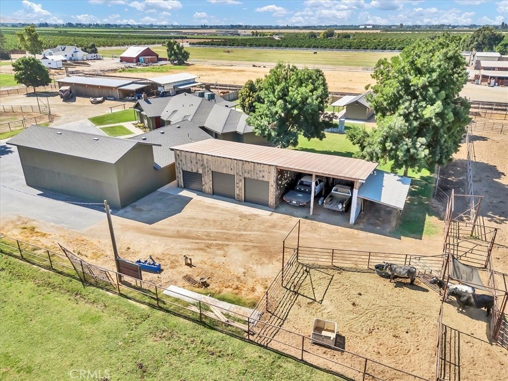 Welcome to this exceptional multi-use property offering the perfect blend of comfort, function, and flexibility across 4.47 acres. This beautifully updated 5-bedroom, 3-bathroom home spans over 3,200 sq. ft. and is ideal for multi-generational living, business ventures, or hobby farming. Inside, you'll find rustic-modern charm with vaulted wood beam ceilings, a large fireplace & hearth, updated flooring, and a welcoming open layout perfect for gathering. The kitchen boasts custom cabinetry, a walk-in pantry, mud-room, and a bar seating area that flows seamlessly into both living spaces. A whole-house fan helps keep things cool and energy efficient, while recent upgrades include new exterior paint and thoughtful finishes throughout. Outside is where this property truly shines - fully fenced and designed for both recreation and business. Enjoy irrigated front pastures, a dedicated arena set up for roping, a horse/hay barn, and a 3-bay powered workshop. There's also a full bath in the garage, an ADU in progress, and a fully enclosed RV parking area. Whether you're housing extended family, launching a home-based business, or raising animals, this property offers unmatched versatility in a serene agricultural setting just North of Visalia.