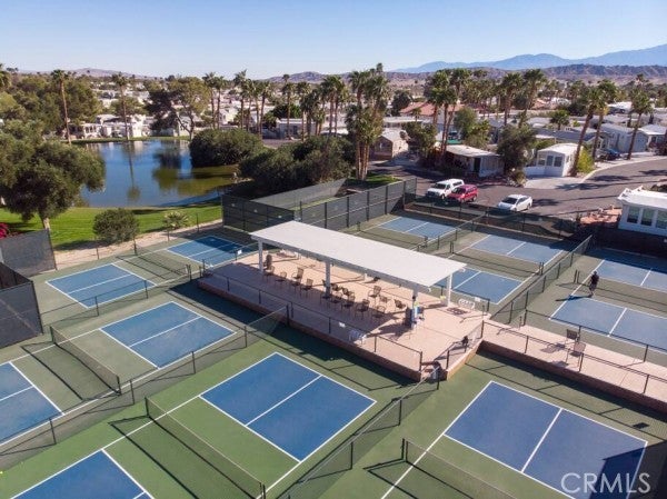 Great location in the park—without premium space rent! This well-maintained home is just steps from the lake and the East Clubhouse. Inside, you’ll find a bright and welcoming living room, a primary bedroom, and an additional bedroom or the California room. The home features laminate flooring throughout, offering a clean and modern feel. The kitchen includes generous cabinetry and a dishwasher, with an open layout that flows seamlessly into the living room and hallway, bathroom and bedroom. Outside, the long paved side yard provides additional parking and leads to a spacious, upgraded porch with an awning—ideal for outdoor dining, relaxing, and entertaining. The cozy backyard is also paved and features installed cloth lines, allowing you to dry clothes and towels naturally in the warm California sunshine. A convenient storage shed provides space for tools and supplies, and the washer located inside the shed offers a "luxury" that most park model homes do not have. The home also includes a central HVAC system that keeps you cool in the summer and warm in the winter. This gated resort community features two clubhouses and a total of 13 natural mineral hot spring pools and jacuzzis, open daily from 8 AM to 11 PM. These therapeutic waters offer relaxation, rejuvenation, and recovery. Additional amenities include: Fully equipped gym Pickleball courts Tennis courts Basketball courts Exercise and yoga rooms Bocce ball Horseshoes Outdoor fire pit Indoor and outdoor concert stages Wild West Wash walking trail Two dog parks—one for large dogs, one for small A beautiful on-site chapel offering weekly Sunday worship services The resort and its residents host a rich variety of activities, including water ball, water aerobics, yoga classes, karaoke, dance nights, bingo, and more. No property tax. No HOA fees. Where else in California can you own a home for under $1,000 per month total, even with a loan? Conveniently located within 15–20 minutes of Desert Hot Springs, Palm Springs, Palm Desert, Rancho Mirage, and Indian Wells, this home offers easy access to everything the Coachella Valley has to offer. Come and live your dream California lifestyle!