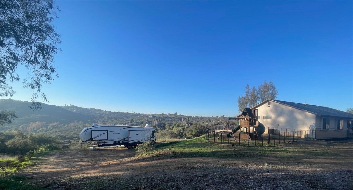 Ready for a home that gives you room to breathe, space to grow, and a sense of calm the moment you arrive? This single-story Valley Center property offers exactly that. With usable land, gentle slopes, with open canyon and hillside views. The home is bright and inviting, featuring an open concept layout. Featuring soft natural light, and the indoor/outdoor living San Diego is known for. It’s upgraded, move-in-ready, and designed to make everyday life feel easy. Step outside and you’ll find space that truly expands your lifestyle. The deck is ideal for gatherings, sunsets, and grilling outdoors. While the kids’ playground and fenced upper acre offer room to play, explore, or keep animals. The land also provides opportunities for an ADU or guest house. Or perfect for corrals, a barn, a workshop, or extra parking for trucks, trailers, and toys. The graded RV pad has hookups. The lower portion of the lot offers direct access to riding and hiking trails. Adding flexibility and adventure to your daily life. All the modern features here. Like a solar system with back-up battery. Plus Nest thermostat, and composite shingle roof bring comfort and peace of mind. All this comes with the convenience of being minutes from the freeway. If you’re looking for space, privacy, and a setting that supports the way you want to live. This property is one you’ll want to experience in person. Existing FHA loan assumable at 2.75% for qualified buyers, subject to lender approval. Buyer to verify all terms with lender.