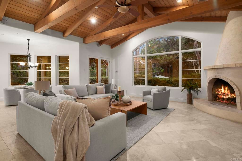 Exceptional floor plan and location — this single-story Spanish-Mediterranean estate rests on over 2.5 fully gated acres on a premier corner lot in the highly sought-after west side of the Rancho Santa Fe Covenant. Designed for privacy and seclusion, the main residence offers five en-suite bedrooms, a dedicated office, and a chef’s kitchen with Sub-Zero, and Viking appliances. Soaring vaulted ceilings and abundant natural light create an airy sophistication throughout. The detached guest house doubles as a pool house with new waterproof flooring, kitchenette, and full bath—perfect for guests, staff, or entertaining. Expansive grounds offer room for a putting green, tennis, or pickleball court. Ideally located minutes from the Rancho Santa Fe Golf Club, the Village, and coast, this estate blends timeless architecture, usable land, and unparalleled convenience.