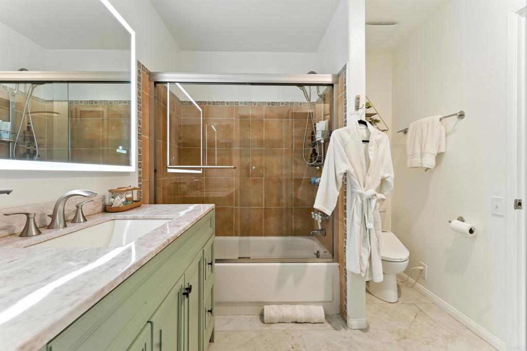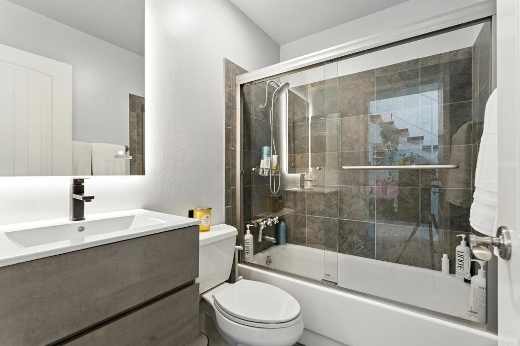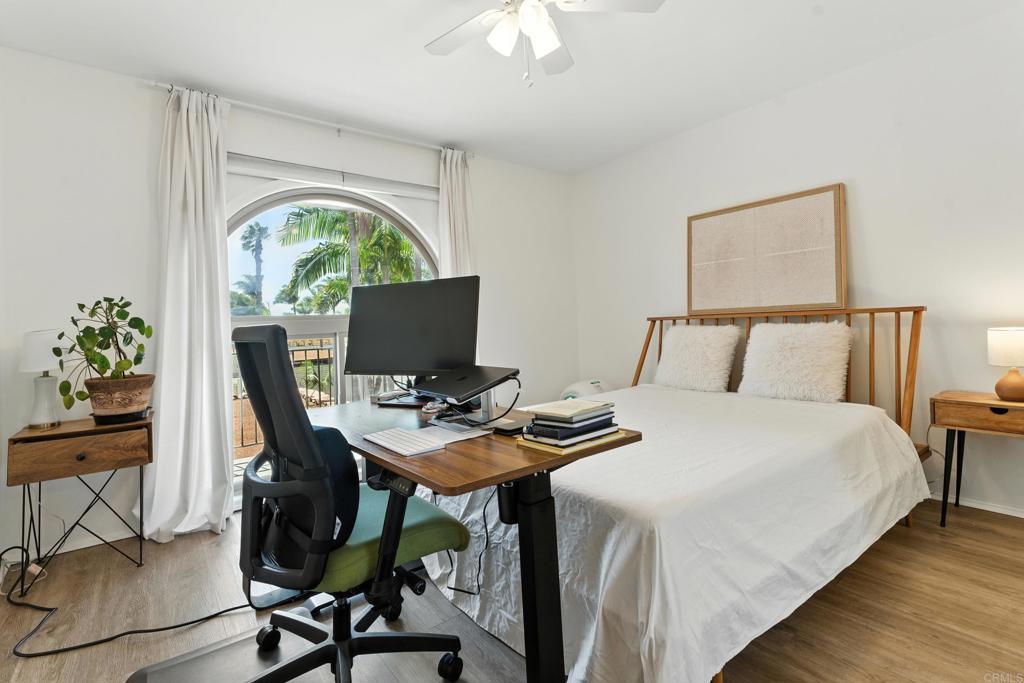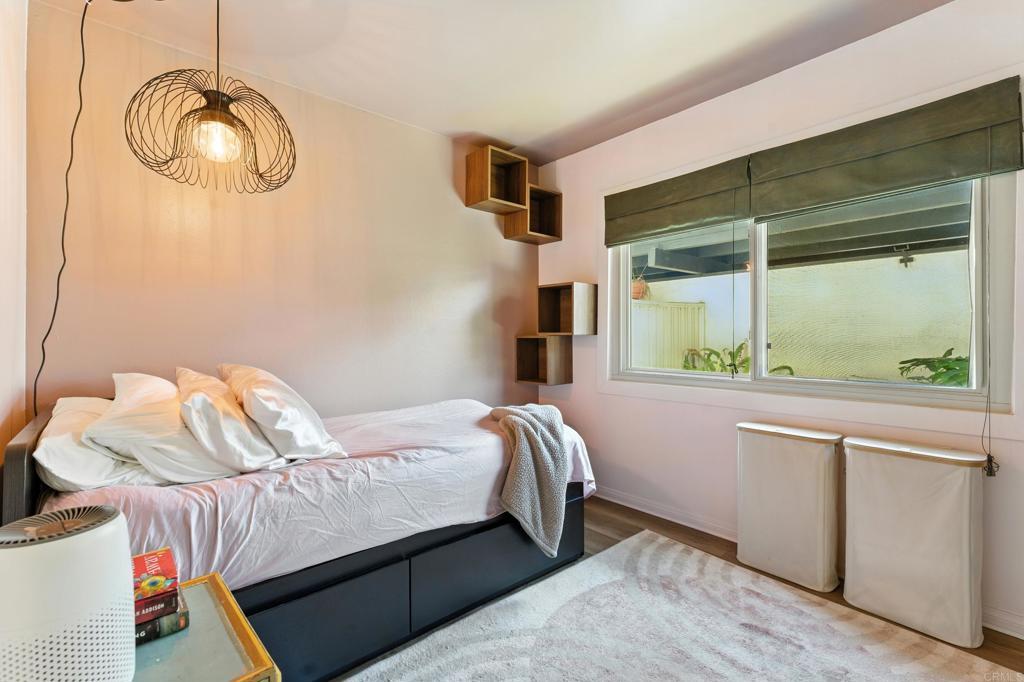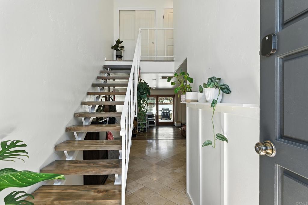 Discover this turn-key coastal retreat tucked away in a tranquil, resort-like community that feels worlds away, yet offers quick and easy access to Ocean Beach, Point Loma, major freeways, Barnes Tennis Center, shopping, airport, and Old Town Train Station. Step inside to find soaring ceilings with stunning arched windows and floating stairs, filling the home with an abundance of natural light. The first-floor bedroom and full bath create an ideal layout for guests, roommates, multigenerational living, or private home office. The fully renovated kitchen is thoughtfully designed with style and functionality in mind, while the gas fireplace, brand-new paint throughout, dual-pane windows, newer vinyl flooring, and water purification system add to the move-in-ready appeal. No carpet means fresh, modern feel with low maintenance that is ideal for beach living. Enjoy the outdoors on your huge private back patio, or take advantage of the community’s serene setting with tree-lined streets, lush landscaping, meandering walkways, and real grass—perfect for pets! Additional features include huge closets with lots of storage, 2 dedicated parking spots, and an inviting heated pool with BBQs and plenty of space for all-day fun in the sun. This home qualifies for Bank of America’s grant program—inquire for details. FHA & VA Approved.