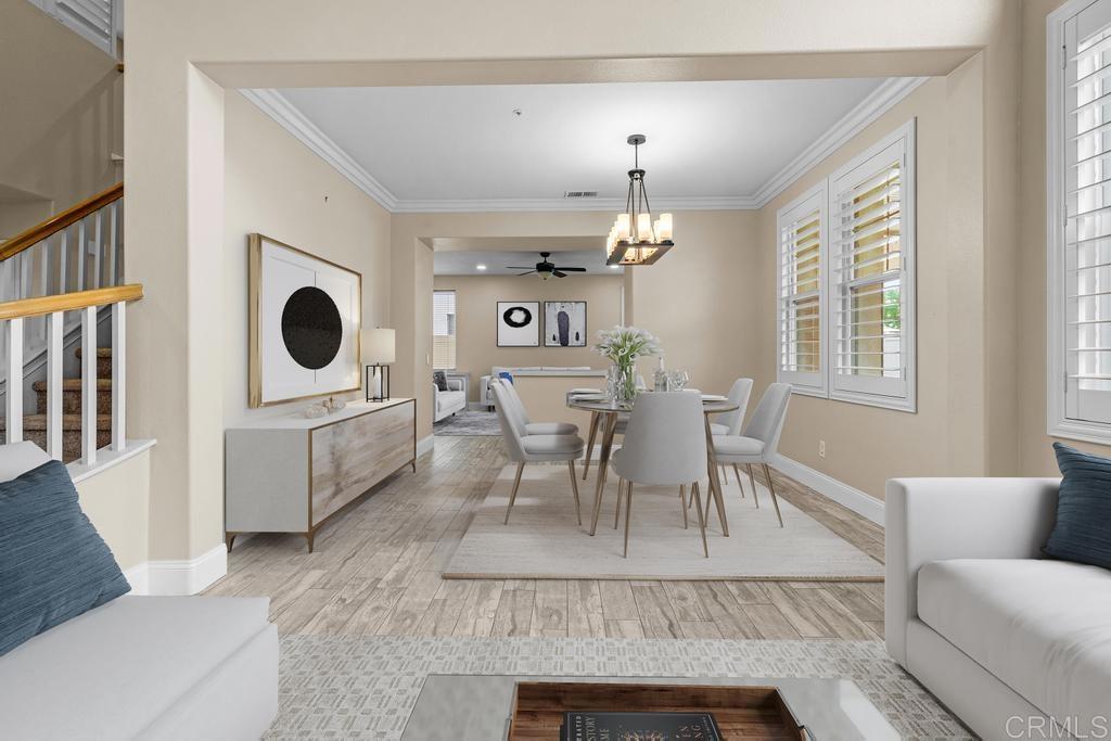 Executive style home located in the golf course community of Rancho San Pasqual. This home features tall ceilings and defined living spaces. When you open the door you will notice the spaciousness of the grand room combining the entry, dining, and living rooms complimented by a statement staircase open to the upstairs loft area. The kitchen is open to a secondary living room or bonus area complete with its own fireplace and a walk in pantry. The backyard has a large covered patio with lighting, fan, and shades to enjoy the outdoors from a place of comfort. You will find a bedroom on the first floor with a full bath. This can be used as a bedroom, office, or whatever fits your lifestyle. The sizable primary bedroom comes with an ensuite bathroom, walk in closet, and separate toilet room. This quiet community is centered around the golf course and recreation. Community pool/spa, BBQ, picnic area, playground, and clubhouse just to name a few. Come see this wonderful home for yourself today!