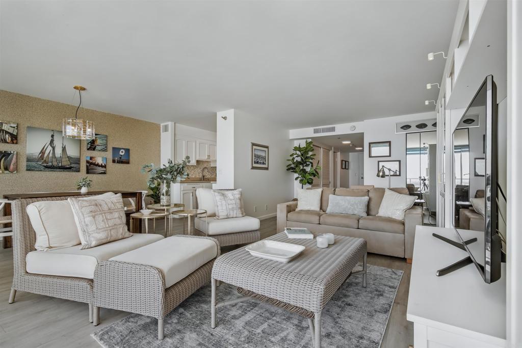 LOVE AND LIFE IS IN CORONADO SHORES AND ALL CORONADO LIFE STYLE!!! This is your chance to own a very well put together unit on the 6th floor of La Princesa Building and enjoy morning coffee or evening wine, a good book, friends, calm time and more with the view of the Coronado/San Diego Bay/Park/Navy Seals Base/ Bike trail and much more. This one bedroom Plus one Kids cubby whole or extra room and one full bathroom with and extra sink for convenience and including all furniture, kitchen appliances, kitchen tools, washer/dryer stackable, new linens, all ornaments is ready for its new owners. Buy it and Live it or Rent it or both and make the most of it. The bedroom walking closet was converted into a second room and the second sink behind the hallway door were done with all permits.