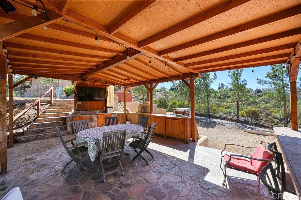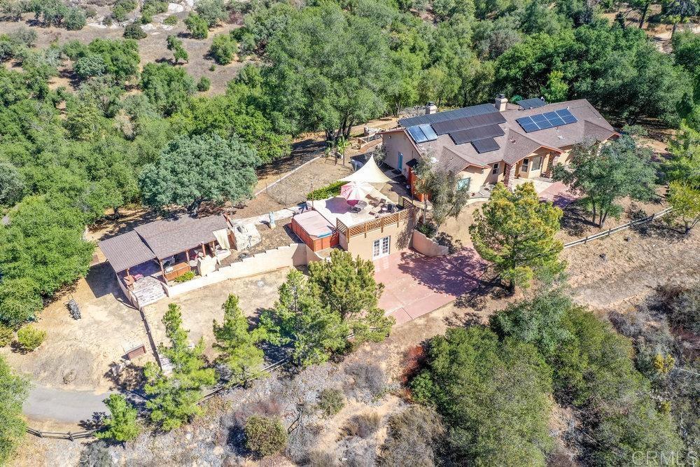 Escape the city and enjoy your own private retreat in Jamul’s Deerhorn Valley. This custom 2010 home is designed for flexible and multi-generational living, featuring a fully detached casita with its own entrance and parking, ideal for extended family, guests, or rental income. The main home offers an open floor plan, vaulted wood ceilings, and large windows showcasing the surrounding mountain views. The kitchen includes granite counters, stainless steel appliances, and a large island. The primary suite features a gas fireplace, high ceilings, and a spa-style bathroom with dual sinks, a private sauna, oversized soaking tub, and walk-in shower. Two additional bedrooms complete the main residence. Outdoor amenities include an expansive patio, pizza oven, spa, and outdoor fireplace. The property also offers flat usable land, a horse corral, and a fully owned solar system for energy efficiency. With a detached ADU, versatile outdoor areas, and a peaceful setting, this home provides comfort, privacy, and options for multi-generation living in one of East County’s most desirable neighborhoods.
