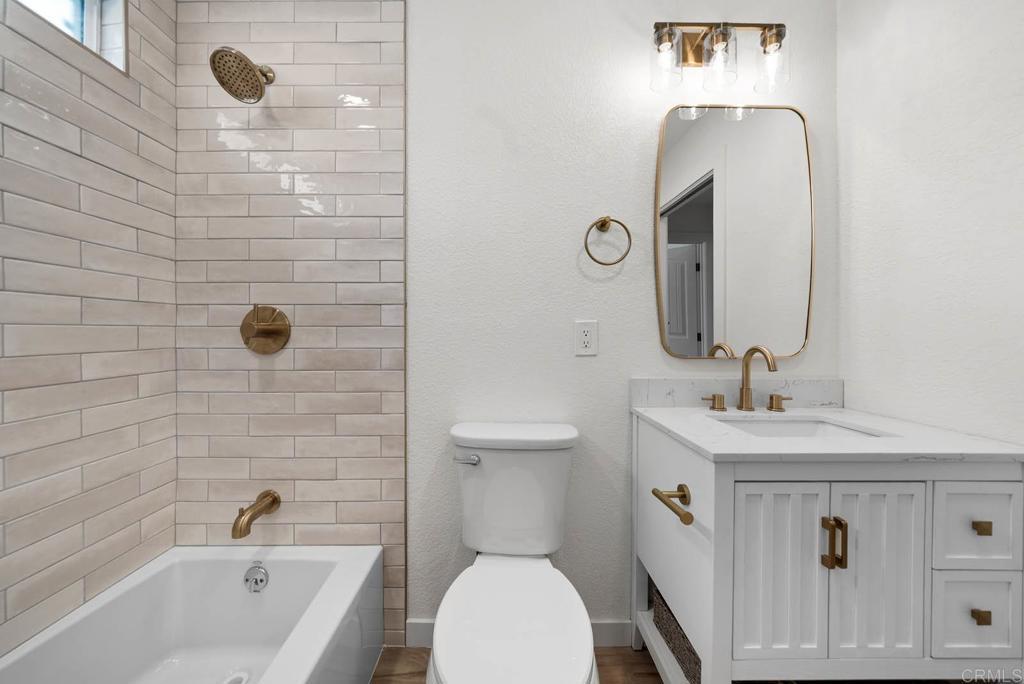 Stunning Fully Renovated Condo in City Heights! Welcome to this beautifully upgraded 2 bed, 1 bath ground-level unit in a gated complex in the heart of San Diego. This home features a completely remodeled kitchen with sleek quartz countertops, white shaker cabinets, subway tile backsplash, stainless steel appliances, and modern brass hardware. The spacious living room is flooded with natural light and showcases durable wood-look flooring that flows throughout the home. The stylishly remodeled bathroom boasts a tiled shower surround with built-in niche, dual-pane frosted windows for privacy, a modern vanity with marble top, and elegant gold fixtures. Additional upgrades include recessed lighting, dual-pane windows, and contemporary finishes throughout. This turn-key unit is perfect for first-time buyers or investors looking for low-maintenance living. Located just minutes from North Park, downtown, and freeway access — this one won’t last!