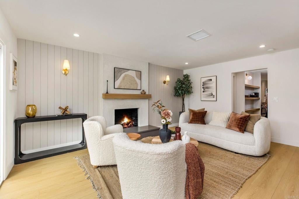 This stunning, fully remodeled gem sits on a quiet, tree-lined street in the heart of Sherman Oaks. Every detail has been thoughtfully updated for modern comfort and timeless style—from the shiplap-clad fireplace wall in the family room to the dramatic marble-style kitchen backsplash, with designer lighting throughout. An open, sun-filled layout welcomes you in, with beautiful new flooring flowing through spacious living areas, anchored by sleek stucco fireplaces. The chef’s kitchen features warm white-oak shaker cabinets, stainless steel appliances, a pot filler, and a large island that’s perfect for gatherings. In the family room, a stylish dry bar adds a touch of luxury, and sliding doors open to a private backyard for effortless indoor-outdoor living. The serene primary suite offers direct backyard access and a spa-inspired bathroom with designer finishes. Two additional bedrooms are bright and versatile, and the fully remodeled hall bath features custom tile, brushed gold fixtures, and a chic vanity. Outside, lush new landscaping and fresh sod enhance the curb appeal, while the backyard’s low-maintenance turf creates a tranquil retreat. The finished detached garage with wall A/C makes the perfect home office, gym, or studio. Located near top-rated schools, parks, and local shops, this home offers the perfect blend of style, function, and the very best of Sherman Oaks living. Come see for yourself!