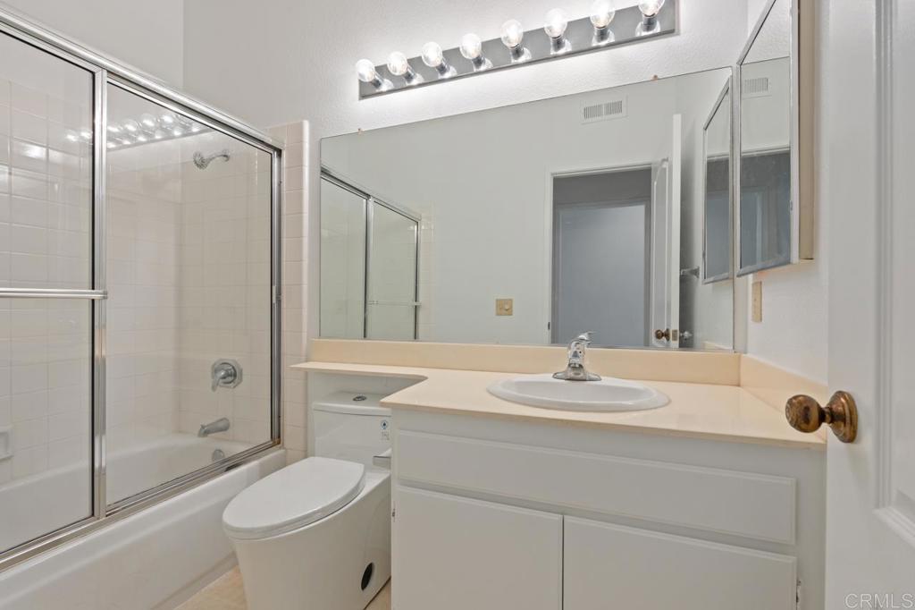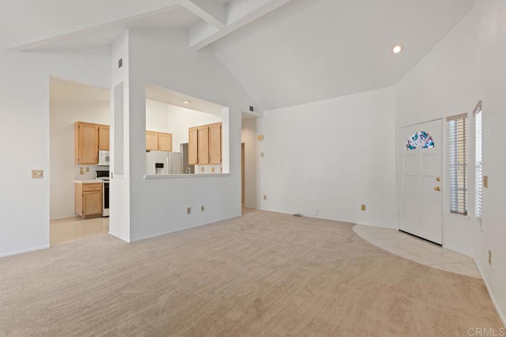 Welcome to your peaceful retreat in the heart of Tierrasanta! This rarely available upper-level 2 bed, 2 bath condo offers 1,226 sq ft of open-concept living nestled in a secluded and beautifully landscaped community. Vaulted ceilings and large windows create an airy, light-filled ambiance throughout the home, while the private balcony offers a tranquil space to relax under the canopy of mature trees. Step inside to a spacious living room with a gas fireplace and direct access to the private patio—ideal for morning coffee or evening wine. The kitchen offers abundant cabinet space and a functional layout, with an adjacent laundry room and storage. The oversized primary suite includes a walk-in closet and an en-suite bathroom. A private 1-car garage with direct access adds rare convenience and storage. Additional highlights include: newer carpet, abundant storage, well-maintained community pool and spa, and a serene natural setting just moments from the Mission Trails trailhead. Ideally located near the 52 freeway for easy commuting, and a short drive to shopping, dining, and all that San Diego has to offer. This Tierrasanta gem is perfect for first-time buyers, military, or anyone seeking a low-maintenance, lock-and-leave lifestyle in a sought-after neighborhood.