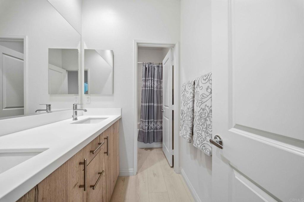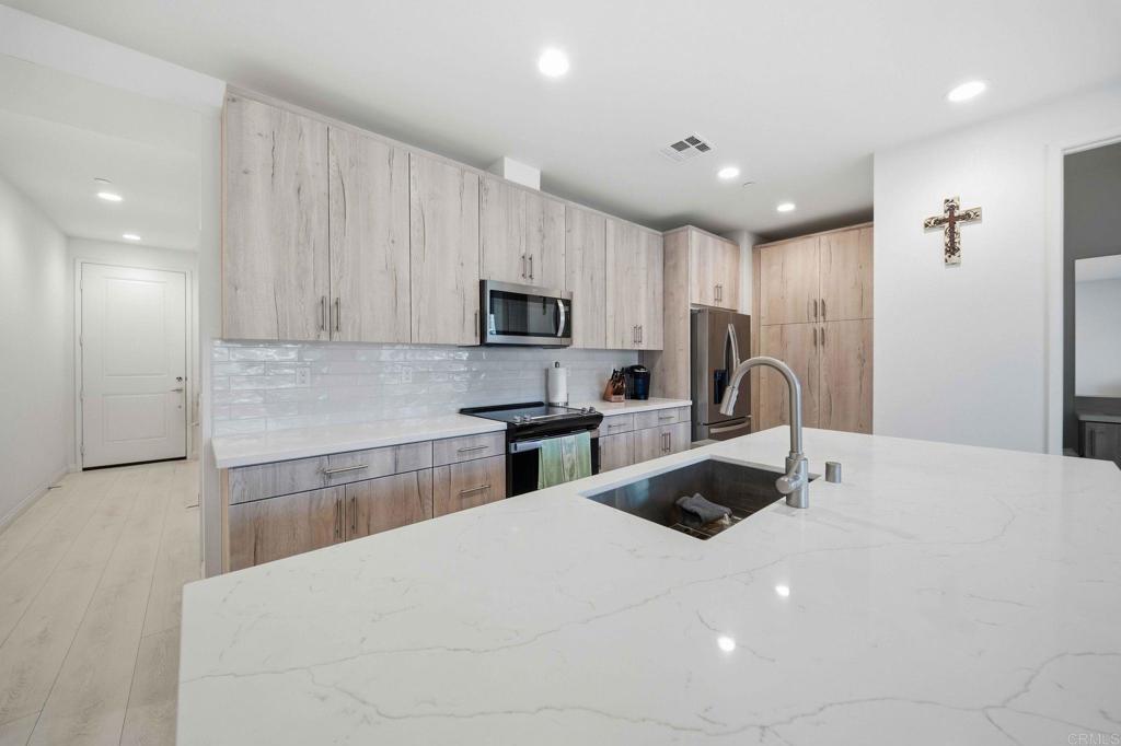 Welcome to 7704 Jasmine Court, a beautifully upgraded 2023 built upscale townhome in Santee’s desirable All-electric Laurel Heights community. This stunning 3 bedroom, 2.5 bath home offers 1,746 sq. ft. of bright, modern living space designed for comfort and style. Step inside to discover high quality waterproof wood vinyl flooring throughout and an open, airy floor plan filled with natural light. The chef inspired kitchen features sleek quartz countertops, a designer backsplash, stainless steel appliances, and a spacious island perfect for gathering and entertaining. Upstairs, you’ll find a versatile loft area ideal for a TV room, office, or play space. Enjoy the convenience of an attached 2-car garage and a private, low-maintenance backyard upgraded with turf making it perfect for relaxing or hosting family and friends. Other features include Paid Solar, EV car charging port in garage and just down the road a community area with a playground and a large pool and spa, perfect to refresh on hot summer days. Located in a quiet, newer community, this home offers easy access to parks, scenic trails, shopping, and freeways 125 and 52, making it the perfect blend of peaceful living and everyday convenience. Priced to sell quickly, this is one of the best values in Laurel Heights. Don’t miss the opportunity to make this move-in ready gem, your new home!