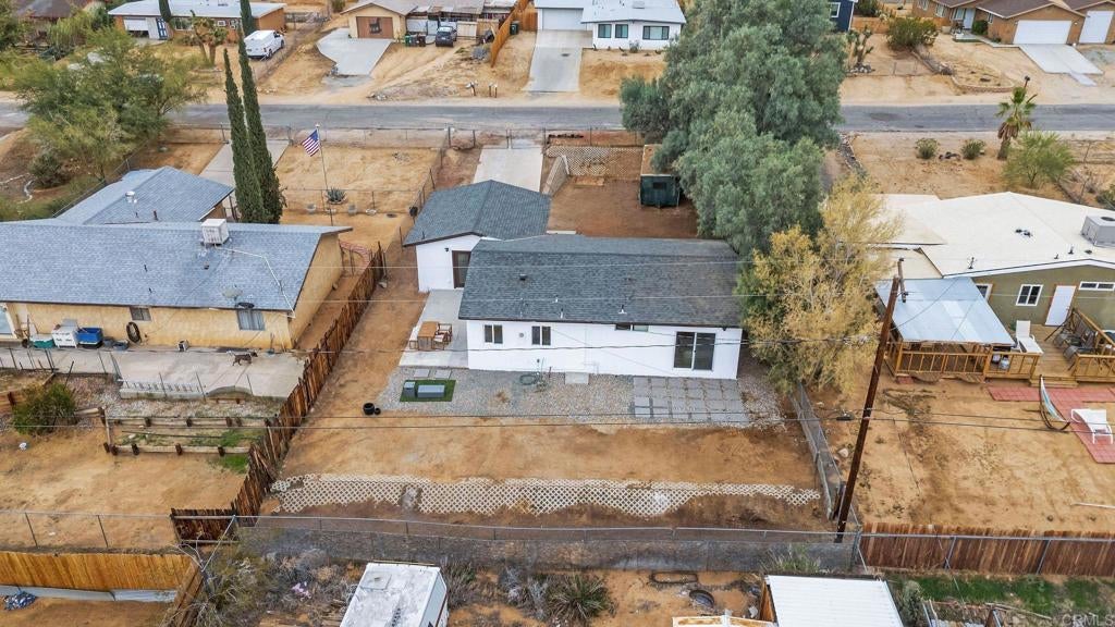 Step inside and you’re greeted by clean lines, natural light, and a warm, inviting design. The fully reimagined kitchen features custom concrete countertops, a center island with bar seating, new stainless-steel appliances, modern cabinetry, and statement tile that adds both texture and personality. The kitchen flows seamlessly into the dining area and spacious living room, creating the perfect layout for everyday comfort and effortless entertaining. Major upgrades include a NEW roof, NEW central AC & heat, and brand-new refrigerator, stove, washer, and dryer — all of which convey. NEW LVP flooring, recessed lighting, and updated fixtures run throughout the home, giving every room a polished, move-in-ready feel.The primary suite dual sinks, contemporary finishes, and great natural light. Two additional bedrooms provide ideal options for guests, office space, or creative use. Thoughtfully styled, each room highlights the calm, modern desert aesthetic buyers love.Outside, the large backyard is a blank canvas ready for your personal touch, outdoor dining, fire pit lounge, garden space, or simply a peaceful spot to take in the night sky. The front yard offers clean curb appeal with room to expand your desert landscaping vision.Located within walking distance to Downtown Joshua Tree, this home offers unbeatable convenience with quick access to JT National Park, the Desert View Conservation Area, local dining, shopping, and more.Fully remodeled, stylishly updated, and situated in one of Joshua Tree’s most desirable locations — this turnkey property is one you won’t want to miss.