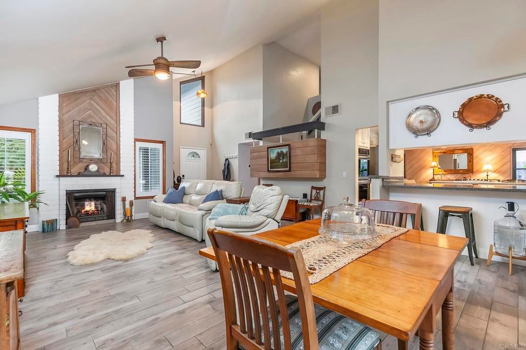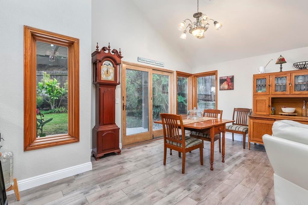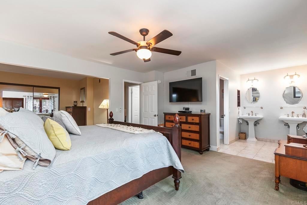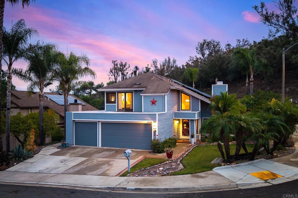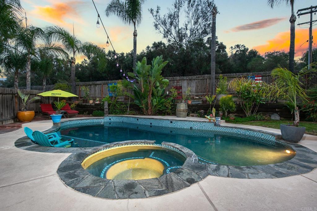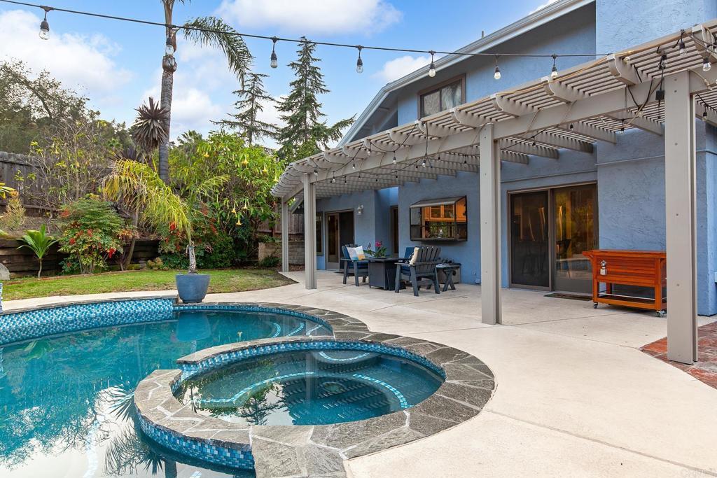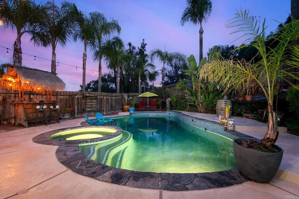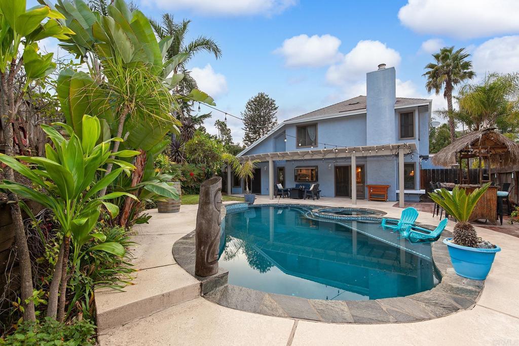 OWNED SOLAR…SALTWATER POOL…RV PARKING. This home has it all! Situated on a spacious corner lot, this 4 bedroom (+ possible 5th conversion) home offers a light and bright open concept floorplan giving each room functionality and purpose while providing easy flow throughout. Soaring vaulted ceilings greet you at the entry along with durable tile flooring which enhances the aesthetic appeal & combines style with practicality in high-traffic areas. Cozy fireplace adds an element of warmth to the Living Room as the plantation shutters offer a perfect blend of privacy & natural light that offer complete privacy when desired. KITCHEN: Elevate your culinary experience with a full suite of premium stainless steel appliances, double oven, 5-burner gas cooktop (with griddle attachment) and undersink water heater for instant hot water. Experience luxury & sophistication with stunning quartz countertops, bar seating and walk-in pantry. Entertain with ease with the thoughtfully designed dry bar area, conveniently located off the Family Room. This space ensures your gatherings are both organized and enjoyable featuring ample storage and additional countertop space. PRIMARY SUITE: Multiple closets, 2 pedestal sinks, private rooftop access and bonus…wall has been removed by previous owner creating an extra spacious suite with additional space perfect for home office, nursery, etc. Additional features throughout include main level bedroom, gas fireplace in family room, Andersen Low-E dual pane windows, new HVAC system and smart thermostat allowing you to effortlessly control the home’s temperature remotely for optimal comfort and energy efficiency. EXTERIOR: Aside from the well maintained interior, the outdoor space is even more attractive…a true entertainer’s dream! Your own tropical oasis, enhanced by strategic exterior lighting, brings the property to life at night. Saltwater pool/spa with abalone finish incorporates a baja ledge for true relaxation. Free standing tiki bar and custom-built aluminum patio cover provides both comfort and ambiance for outdoor living and enjoyment. Lush landscaping (+ mature producing citrus trees) make this the perfect retreat away from the modern world. OWNED SOLAR: Energy independence is achieved with 23 fully owned solar panels greatly reducing, if not eliminating, utility costs. PARKING: Ample parking includes a 3-Car garage with electric vehicle charger and RV enthusiasts can enjoy convenient community RV/boat parking! This is a MUST SEE!