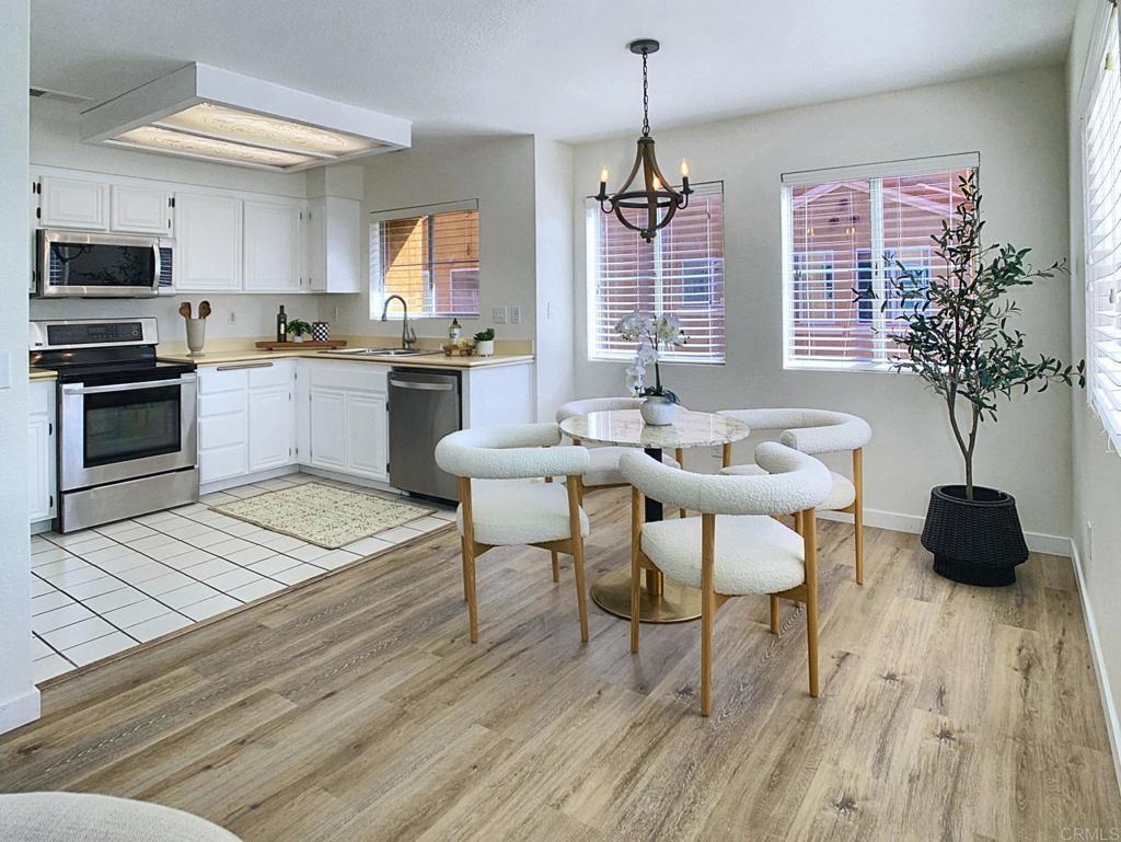 Beautiful townhome centrally located in El Cajon in a very well-maintained community! This beauty offers 3 bedrooms, 3 bathrooms, with a spacious primary bedroom and bathroom en-suite. New flooring, paint and a cozy fireplace to enjoy making this townhome very inviting. There are mountain views from several rooms and the deck right off the dining area to enjoy friends and family time. There is a spacious 2-car tandem garage equipped with storage shelving and work bench. The washer and dryer is located in the garage, which also will stay with unit. Conveniently located close to Hwy 8, and minutes from major stores, medical facilities and Grossmont Hospital. Come check this beautiful townhome! This is a perfect home for first-time buyers, or rental income property!