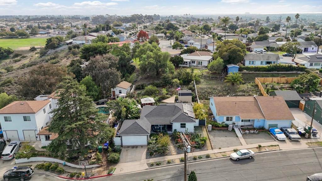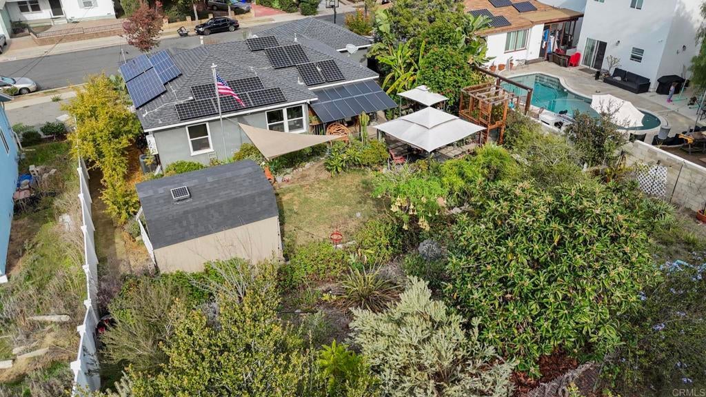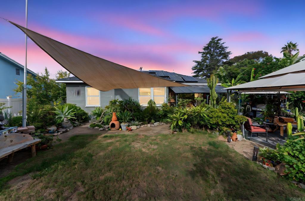 Calling all nature enthusiasts! Welcome to 5725 Dream St — an upgraded, move in ready home, at the end of a quiet cul-de-sac with plenty of open parking and downtown skyline views, PAID OFF SOLAR, A NEW ROOF and an enchanting peaceful garden oasis. Step inside to a bright, inviting living space with dual-pane windows, LED lighting, custom blinds, ceiling fans in each bedroom, plus Central A/C and an upgraded 200-amp electrical panel with an EV charging station. The kitchen features a massive refrigerator + freezer for the at home chef. Enjoy added comfort with a tankless water heater, and beautifully retiled bathrooms, including a relaxing jetted tub in the primary suite. The true showstopper is the enchanting, mature garden lovingly cultivated over many years—featuring many exotic flowers that attract hummingbirds and butterflies. You will find many fruit bearing trees such as banana, apple, pluot, aprium, orange, loquat, and a thriving pomegranate tree that yields around 75 lbs of fruit annually. Complete with an enclosed garden, your vegetables will be protected year round. The crowned jewel is the ultra rare Rainbow Eucalyptus, which is a true statement and a centerpiece to your private backyard. Enjoy each moment with a cup of coffee and relax by your outdoor fountain. Sitting on a spacious 7,900 sq ft lot, this yard offers plenty of useable space, room to add an ADU, and a 2-story 12×10 Tuff Shed, which can be used for storage or an office, complete with its own private entrance. Located in the peaceful setting of Valencia Park with easy access to local amenities and hiking trails through the canyon. You are approximately 10 minutes from downtown and Chollas Lake, 15 minutes from the beach and 20 minutes to Mexico. This home blends comfort, upgrades, and serenity… a dream come true.