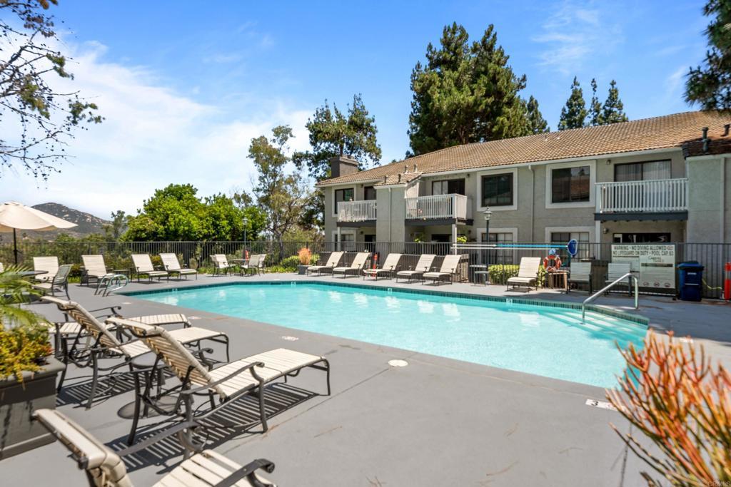 ** Move-In Ready Gem in Highly Sought-After Carmel Trails! ** 1 Bedroom • 1 Bath • Ground-Level Corner Unit Welcome to Carmel Trails, one of North County’s most desirable resort-style communities—ideally situated in the heart of Carmel Mountain Ranch and within the award-winning Poway Unified School District! This beautiful ground-level corner unit offers the perfect blend of comfort, convenience, and incredible value. Interior Highlights: Freshly painted throughout Granite countertops in both kitchen and bath All appliances included Bright, airy interiors with custom window treatments Living room features a granite-faced fireplace, neutral carpet, and ceiling fan in dining area Spacious bedroom with dual mirrored closets Full-size laundry closet with shelving 1 assigned carport parking space in front of unit Private patio overlooking a serene greenbelt — you'll love the peace and greenery. Resort-Style Community Amenities: 2 gated pools & spa (unit in close to pool) Clubhouse with fitness center & sauna Tennis & basketball courts BBQ area Ample guest parking Prime Location: Just minutes to I-15, top shopping centers, Costco, Home Depot, restaurants, movie theater, and everyday conveniences. Perfect for commuters, first-time buyers, downsizers, or savvy investors. All nestled within a quiet, park-like setting surrounded by mature pines and lush landscaping. Don’t miss this opportunity! Highly rated schools, Rancho Bernardo High School and Bernardo Heights Middle Schools, are very close by — schedule your tour today and make this exceptional condo yours!