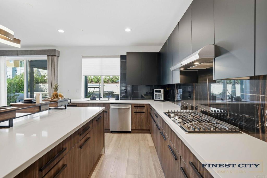 Discover modern luxury and exceptional design in this highly upgraded home. Every detail has been thoughtfully chosen with contemporary style and comfort in mind. The chef’s kitchen showcases bold black finishes, sleek cabinetry, and premium appliances—perfect for everyday living and entertaining. The open-concept great room is a true showpiece, featuring a built-in bar, dramatic black tile accent wall, fireplace, and custom built-in bookcases. New vinyl plank flooring adds a modern touch throughout. Upstairs, a stylish home office offers the perfect workspace. Retreat to the luxurious primary suite with its cozy fireplace and extra-large closet. Step outside to the private backyard oasis, complete with an outdoor kitchen finished in elegant black granite—ideal for relaxing or hosting friends.