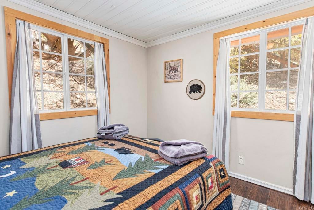 Experience elevated mountain living in the heart of Moonridge, just blocks from Bear Mountain Resort. This tastefully updated 3-bedroom, 2-bath cabin blends modern upgrades with timeless lodge character, featuring fresh exterior stain, two fireplaces, and updated kitchens and bathrooms. The home's versatile layout includes a main-level full kitchen plus an upper-level kitchenette, ideal for hosting guests or maximizing rental income. Set on a premium 1/3-acre lot (not one of those small 2500sqft lots), the property offers sweeping views from the expansive front deck and room for future outdoor enhancements, as well as options for snow play on your very own hillside!. A rare, permitted bonus 300sqft loft area (not included in listing sqft) currently designated as storage, provides the opportunity to create additional living space. This is the perfect retreat or investment in one of Big Bear's most desirable neighborhoods.