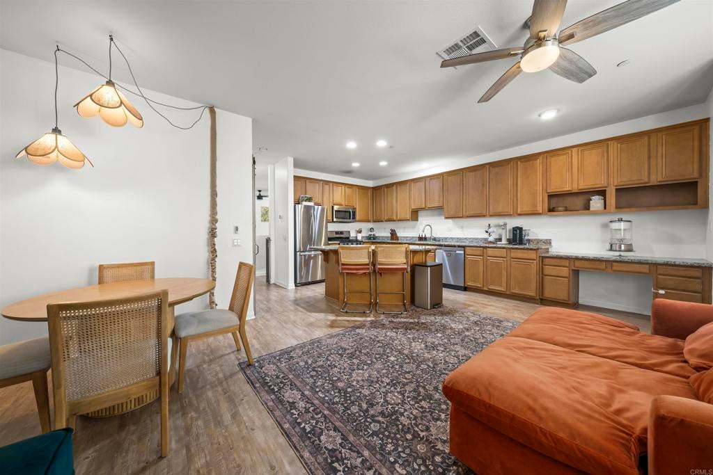 Move-In Ready Tri-Level Home in Gated El Cajon Community Welcome to this beautifully maintained tri-level home located in a desirable gated community near downtown El Cajon. Offering over 1,800 square feet of comfortable living space, this property is perfect for first-time buyers or anyone seeking a modern, low-maintenance lifestyle. Step inside to an inviting open layout featuring stainless-steel appliances, ample storage throughout, and a generously sized walk-in pantry. The home includes 3 spacious bedrooms, 2.5 bathrooms, and a primary suite with a walk-in closet, providing plenty of room to relax and unwind. Additional highlights include solar panels for energy efficiency, a 2-car garage, and a low $99 monthly HOA, giving you access to a well-maintained gated community without the high fees. With its close proximity to downtown amenities, dining, shopping, and commuter routes, this move-in-ready residence delivers exceptional value and comfort in one of El Cajon’s most sought-after locations.
