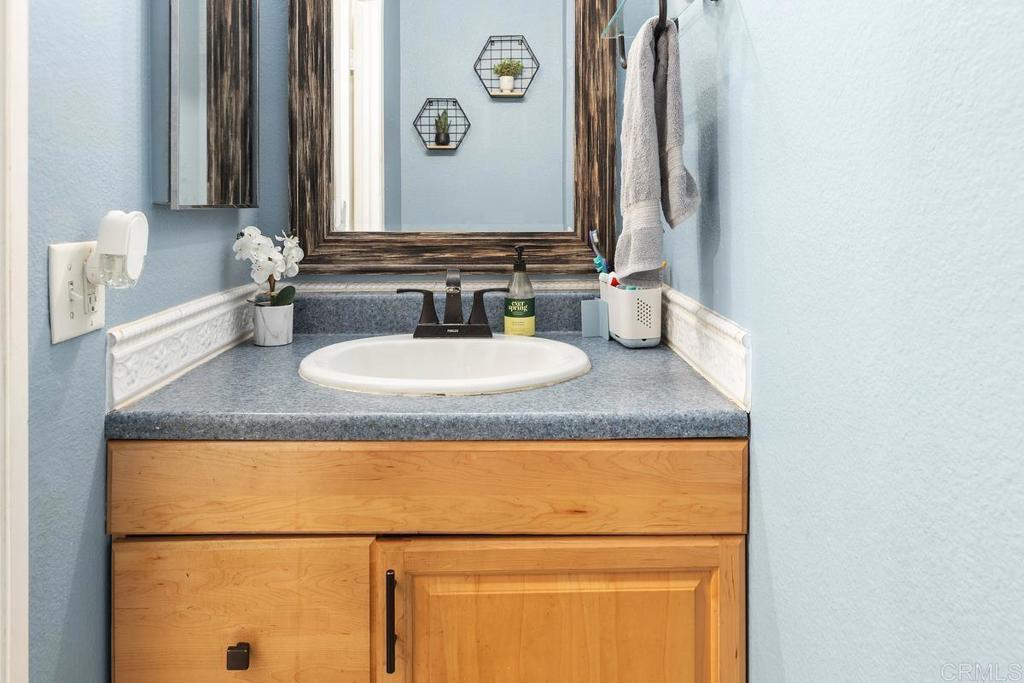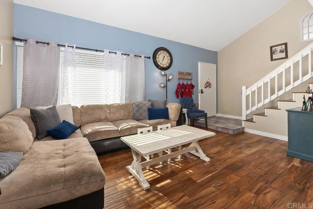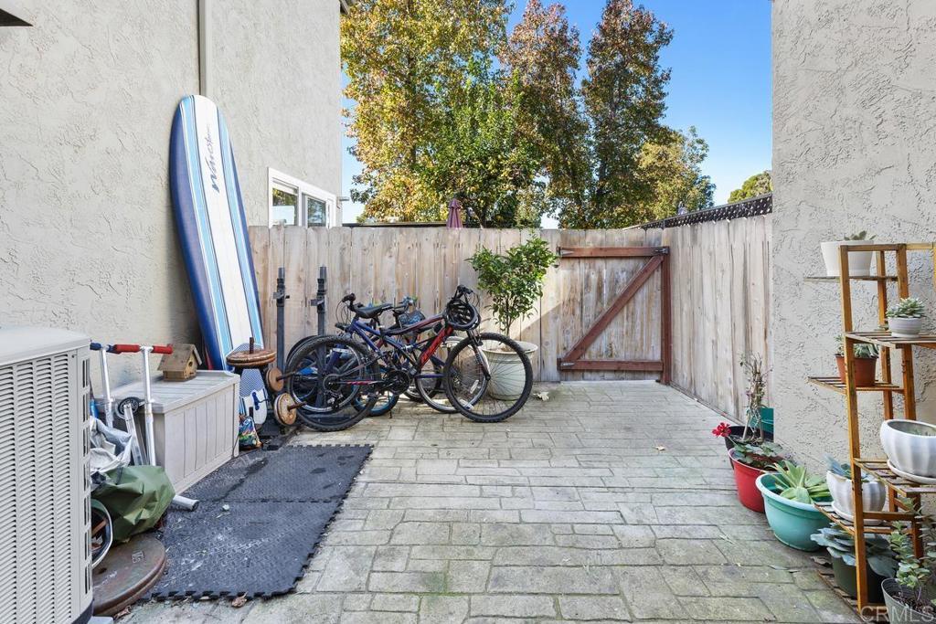 Gorgeous FHA/VA approved 3 bed/1.5 bath townhome in the highly sought-after community of Villa Martinique. HOA includes Fire Insurance, Water, Trash, use of Tennis courts, swimming pool, and grounds maintenance. Welcome home to this beautifully updated 1250sqft model. Highlights include; a first floor bedroom, remodeled kitchen with new cabinets and stunning Calcutta Gold quartz countertops, engineered wood flooring in living area and bedrooms with tile flooring in kitchen and bathrooms. The half bath and laundry closet with full size washer/dryer is centrally located on first floor. Upstairs you’ll find a full bath with separate vanity adjacent to the Primary Suite and the third bedroom. Central Air was replaced in 2020. Two reserved parking spaces (1) covered and (1) open are located just a short walk to your patio/back door. Great outdoor space with stylish Alumawood patio cover-known for durability and low maintenance. Enjoy relaxing on your patio with a cup of coffee, gardening, or grilling with friends. The complex boasts miles of walking trails with a scenic canyon view. Walking distance to Tierrasanta Elementary -offering a highly coveted Spanish immersion program, DePortola Middle School & Canyon Hills High. This home is a must see!