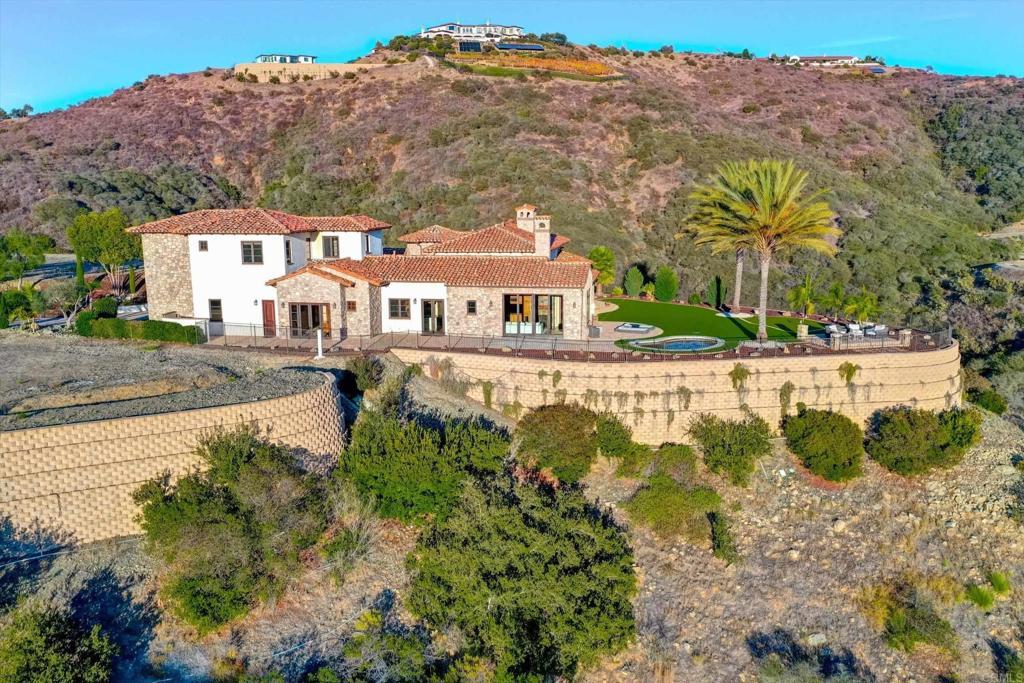 Set high above the coast in Cielo’s exclusive guard-gated community, this custom luxury estate showcases sweeping ocean, coastline, and city-light views from Del Mar to downtown San Diego. Designed for elevated living, the home blends refined craftsmanship with a seamless indoor/outdoor flow. Impressive 10-foot hand-carved mahogany doors open to travertine and Versailles-pattern stone floors, solid Alger wood doors, masonry fireplaces, and elegant architectural details. Expansive windows frame panoramic vistas throughout. The great room features 16-foot sliding pocket doors that extend the living space to spacious view patios ideal for entertaining. The main-level primary suite offers dual walk-in closets and a spa-inspired bath, while every additional bedroom includes its own walk-in closet. With unmatched privacy, timeless design, and breathtaking views, this residence delivers the pinnacle of luxury living in one of San Diego’s most sought-after communities.