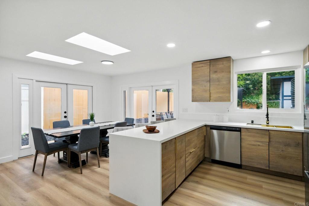 Fully Renovated Entertainer’s Dream in San Diego! About half a mile from the San Diego State University campus. Welcome to this stunning 4-bedroom, 3-bath home with 2 optional bonus rooms—perfect for a growing family. Step inside to discover a completely renovated interior featuring luxury vinyl plank flooring, new baseboards, modern 6-panel doors, and a sleek, contemporary design. The heart of the home boasts a European-style kitchen cabinets with quartz countertops, a waterfall peninsula, and stainless steel appliances—ideal for hosting or everyday living. All bathrooms have been tastefully updated, and the home also features a new roof and fully paid-off solar for energy efficiency. Enjoy low-maintenance landscaping with artificial turf in both front and backyard. The backyard is an entertainer’s paradise with a spacious deck, Jacuzzi tub, fire pit, and a custom-built wood table and benches under a covered patio—perfect for gatherings and outdoor dining. Don’t miss this move-in ready gem located near SDSU, shops, and dining. A rare find with flexible living space and stylish upgrades throughout!
