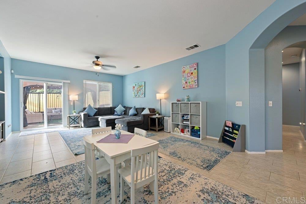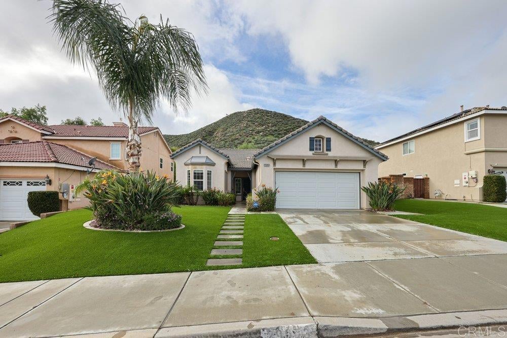 Menifee Living at Its Finest! Enjoy breathtaking panoramic mountain views from this beautifully maintained home, perfectly situated on a quiet street with no neighbors behind.The oversized living room is ideal for entertaining, featuring a stunning tile fireplace and built-in media niche, and seamlessly opens to a private, low-maintenance backyard. Relax or host guests under the charming gazebo while enjoying unmatched privacy. The spacious kitchen offers abundant storage, a newer stove, and a cozy breakfast nook complete with a window seat—perfect for reading or morning coffee. The large primary suite is a true retreat, showcasing a full bathroom with a soaking tub, walk-in shower, and an expansive walk-in closet. Additional highlights include an indoor laundry room with ample storage and a full-size washer and dryer included. The home features Arched doorways, a charging station in garage for electric vehicle, newer HVAC system installed in 2023, a Nest thermostat, a home security system that includes outside cameras around the house and a ring camera for added security, and solar for added efficiency. The beautifully landscaped front yard boasts low-maintenance synthetic turf. Conveniently located near schools, Roy W. Kabian Memorial Park, and Canyon Lake, this home offers comfort, privacy, and an exceptional lifestyle.