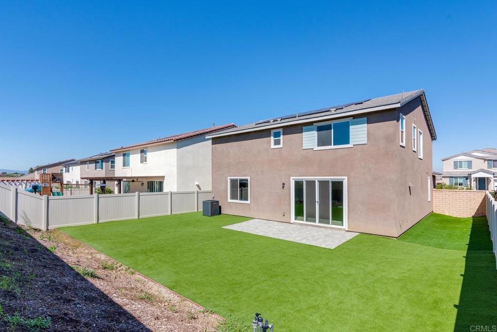 Opportunity knocks in the Heart of Menifee! Built in 2023, this stunning 4-bedroom, 3-bathroom home spans 2,697 sq. ft. of thoughtfully designed living space—perfect for comfort, style, energy efficiency, and functionality. Step inside to an open-concept space filled with natural light from an abundance of windows. The gourmet kitchen is a true showstopper, featuring white shaker cabinets, sleek quartz countertops, stainless-steel appliances, a large center island, and pantry, all seamlessly flowing to your backyard oasis with center-meet patio doors. Enjoy the flexibility of a main-floor bedroom and bath, perfect for guests or multigenerational living, plus a convenient upstairs laundry and versatile loft space, ideal for a home office, playroom, or media area. The luxurious primary suite offers the perfect retreat with added windows, a spa-inspired ensuite with dual sinks, and an expansive walk-in closet. Two additional bedrooms share a well-appointed bath, and a laundry room with side by side stainless-steel washer/ dryer complete the upstairs layout. Additional highlights include solar, a smart thermostat, wood laminate flooring, ceiling fan prewiring, a two-car garage with service door, and an easy-to-maintain backyard featuring artificial turf, ready for you to create your own outdoor oasis. Located in a sought-after Menifee neighborhood surrounded by trails, close to schools, shopping, dining, and freeway access, this home is the perfect blend of modern comfort and everyday convenience.