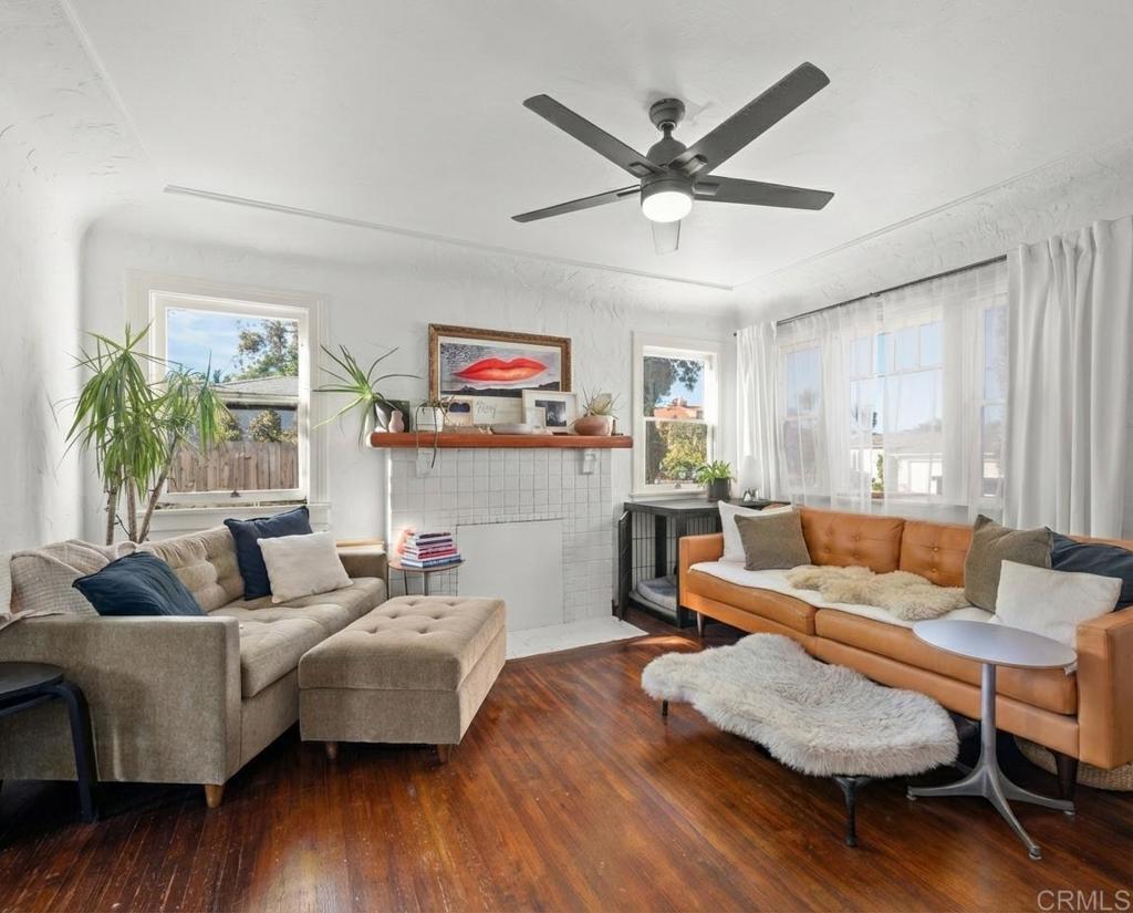 Beautiful & Charming Home nestled in the Alhambra Park subdivision of the desirable Talmadge neighborhood, this inviting home blends classic Spanish Craftsman charm with thoughtful enhancements. Highlights include beautiful original hardwood floors, cove ceilings, and a private backyard with a custom deck—ideal for entertaining. Recent improvements include a replaced garage roof with a rooftop deck, new rear patio/deck, and a rebuilt front porch. The kitchen features new lower cabinets, countertops, and appliances, while the bathroom offers a walk-in shower with updated plumbing, along with a new sink and toilet. A detached garage with rooftop deck provides stunning city lights and skyline views. Centrally located near SDSU, shops, eateries, and major freeways, this charming home offers the perfect balance of character, comfort, and convenience. Please note that this property is being sold AS IS.