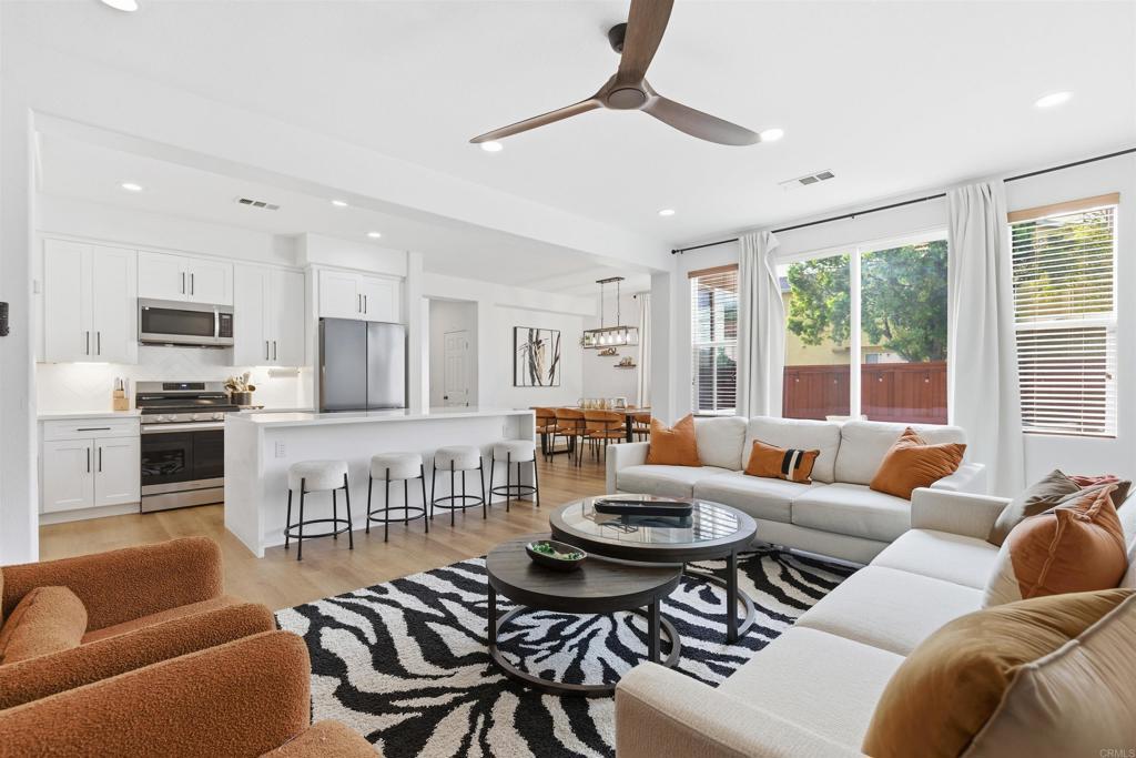 Beautifully updated 4-bedroom, 3-bath home featuring a remodeled kitchen with modern finishes and new flooring throughout. The inviting living room offers a cozy fireplace, while a separate family room features an additional fireplace and provides flexible space that can easily be converted into an extra bedroom. One bedroom and a full bathroom are conveniently located downstairs, ideal for guests or multigenerational living. A versatile loft adds extra living space perfect for a home office, playroom, or media room. Step outside to a cozy backyard, ideal for entertaining or relaxing. The home includes a 2-car garage and a functional, well-designed layout. Enjoy resort-style HOA amenities including multiple pools, party rooms, and a fully equipped gym. Ideally located within walking distance to schools and shopping, this move-in-ready home offers comfort, flexibility, and everyday convenience.