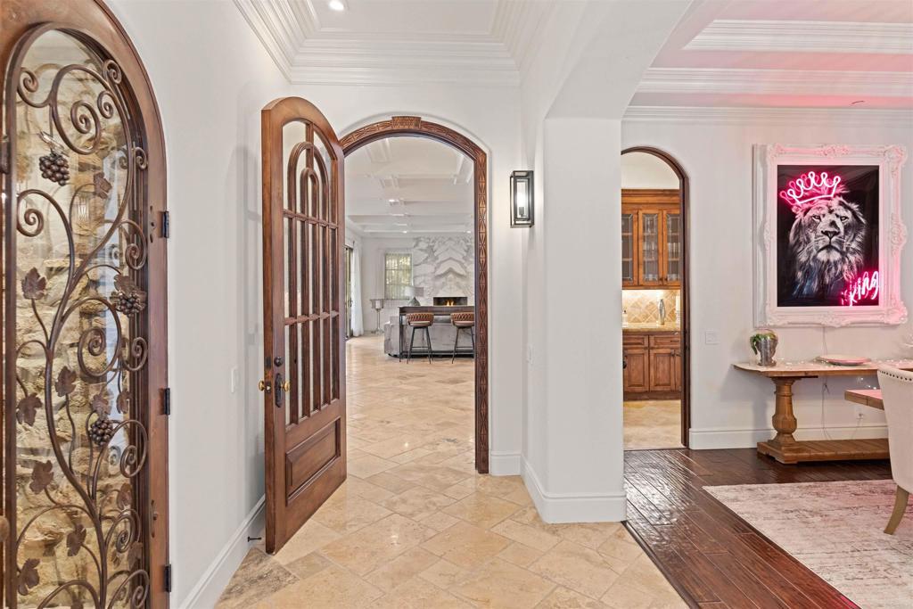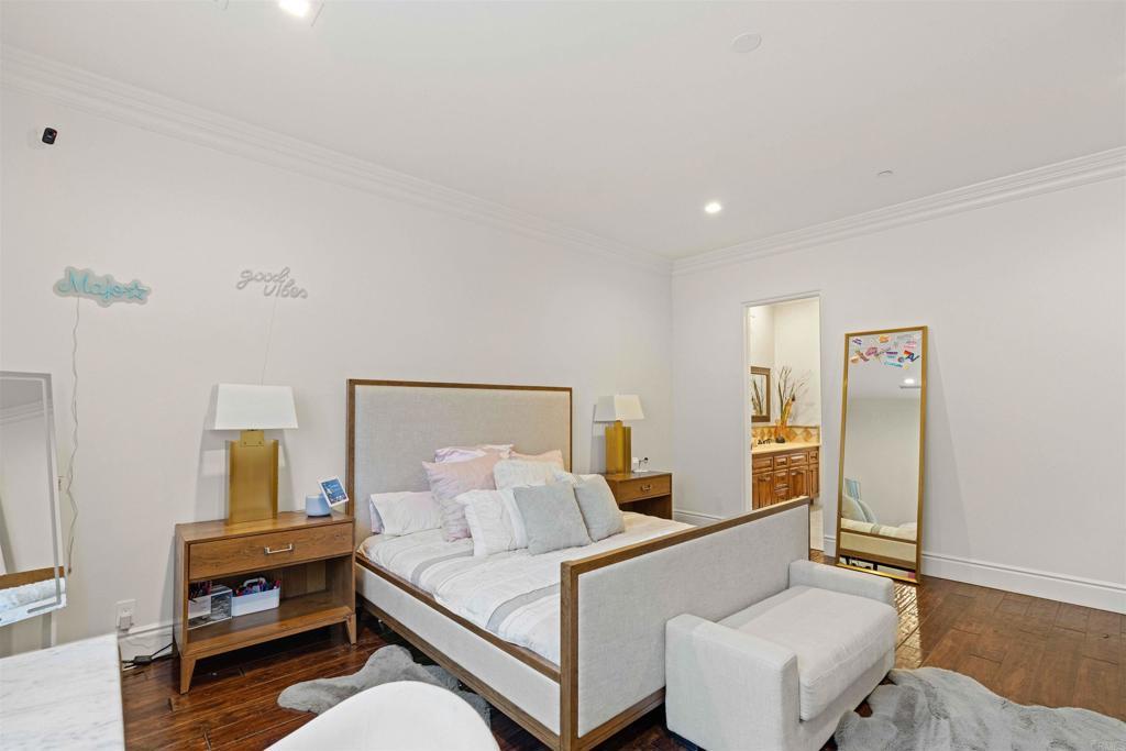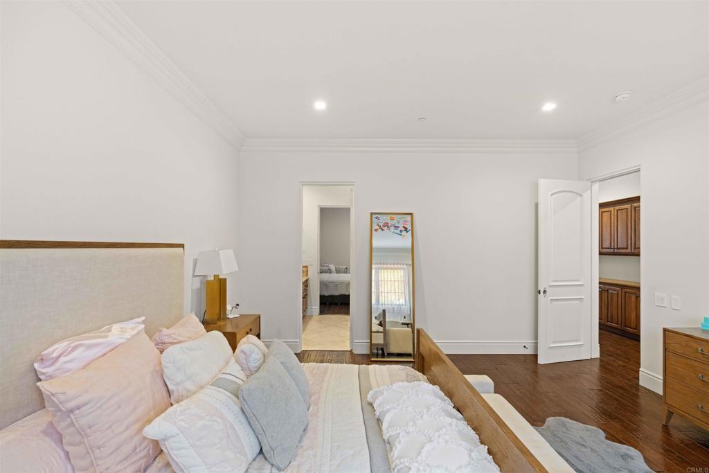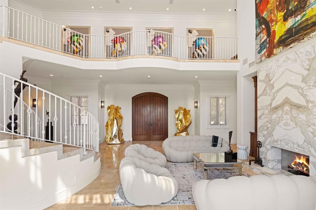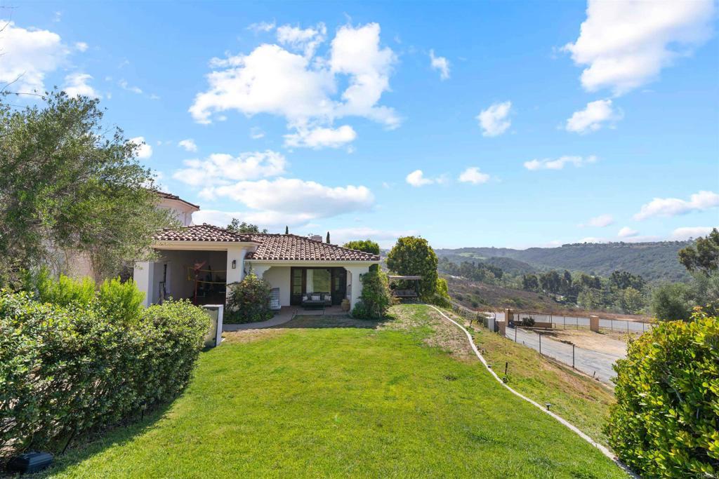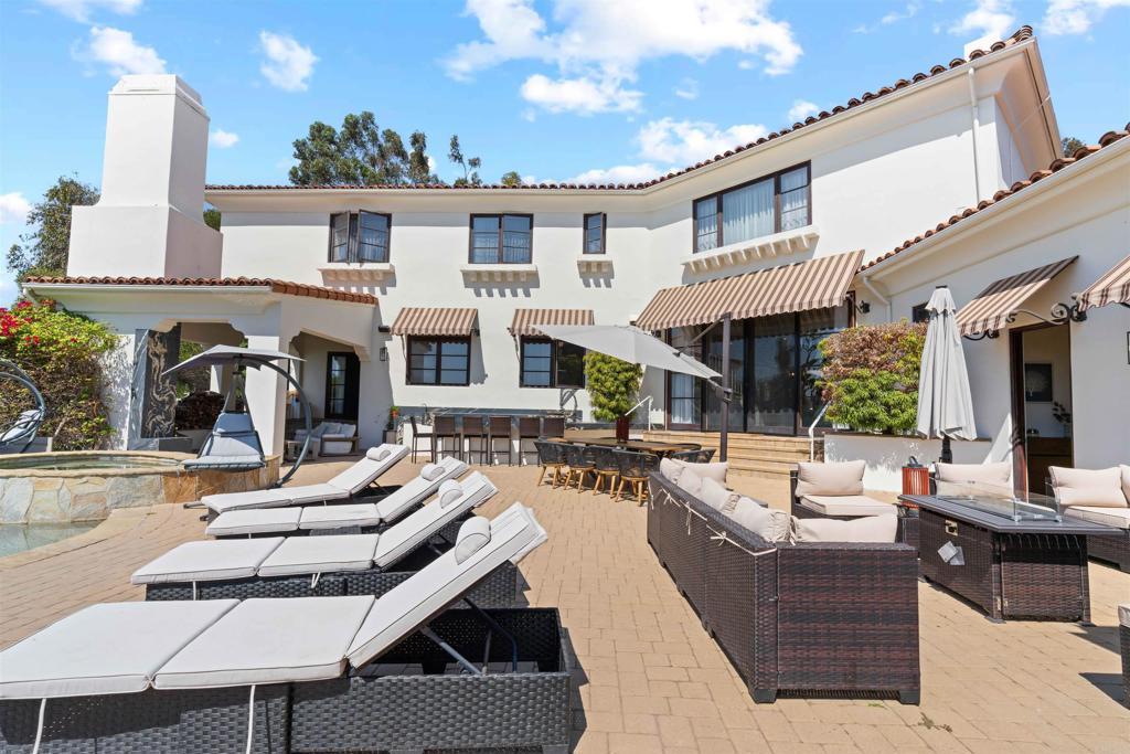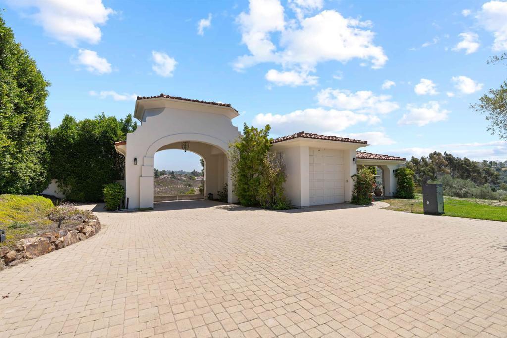 Welcome to The Bacara House on Del Mar Mesa. A one-acre estate offering panoramic sunrise views over the canyon and The Grand Golf Club. With over 8,100 sq. ft. of custom designed living space, this residence is built for both everyday comfort and entertaining. The main house features five bedrooms, an executive office, a playroom, maid’s quarters, and a total of six full bathrooms, one half bath, and an additional powder room. A detached guest suite includes a private bedroom with ensuite bath, walk-in closet, and fireplace, ideal for extended stays or live-in guests. Enjoy a true resort-style backyard with a pool and spa, outdoor bar, fireplace, multiple lounge and dining areas, and a spacious greenbelt perfect for kids and pets. Car enthusiasts will love the attached 4+ car garage and a detached RV-sized garage, perfect for boats, trailers, or a collection of toys. Located just minutes from One Paseo, The Grand Del Mar, and the three-Michelin-star Addison. Additional highlights include secure gated entry, a long private driveway, and a quiet cul-de-sac location for added privacy. Solar panels were installed in 2023 with a PPA at $700/month to be transferred to the new buyer.