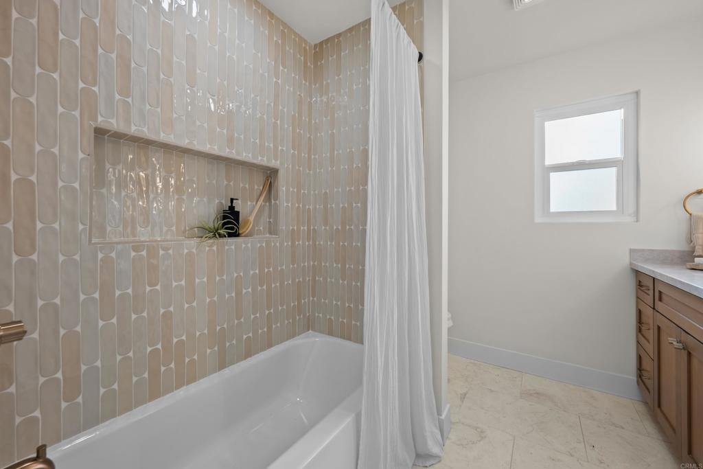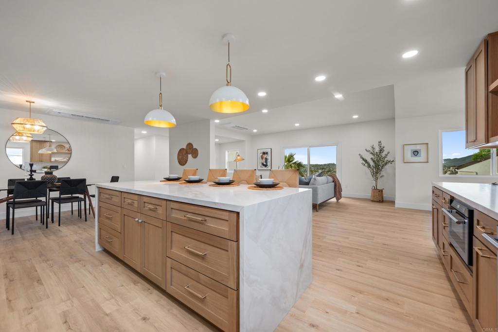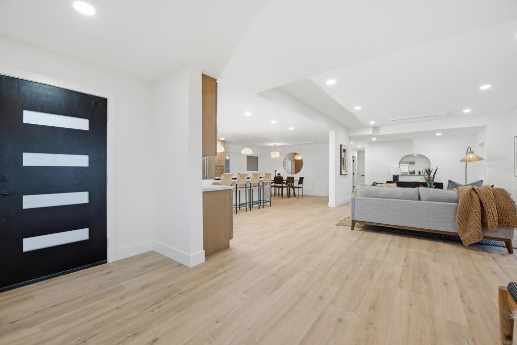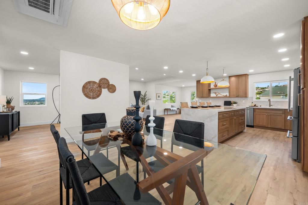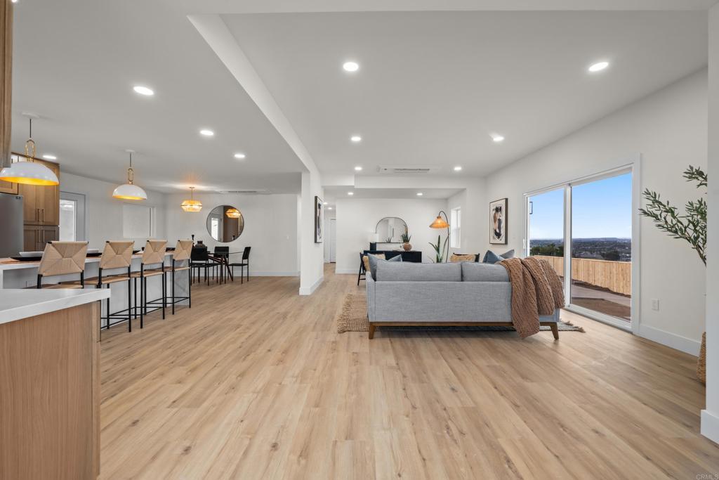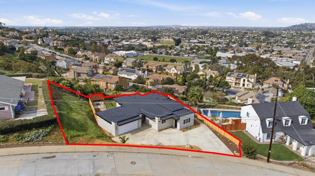 Incredible views in La Mesa! This property is perfectly situated on a flat .25 acre lot in the highly sought-after Mt. Nebo / Eastridge neighborhood. Perched to capture incredible, unobstructed views for miles, this property delivers the kind of panoramic backdrop that rarely comes available. This home has been fully renovated with no expense spared. Major upgrades include a brand new concrete driveway, all new exterior stucco, new roof, new garage door, new HVAC system, and new windows and doors. Inside, you’ll find beautiful white oak cabinets, stainless steel appliances, quartz countertops, custom tiled backsplash, and three generously sized bedrooms. Everything feels cohesive, clean, and thoughtfully done. The large primary retreat features more breathtaking views along with a walk-in closet, large ensuite bathroom with double shower heads and double vanity. Step outside to a fully landscaped yard with new sod, low maintenance plants and underground irrigation. New privacy fencing for and a beautiful pergola that creates the perfect setting for outdoor dining and entertaining while taking in those sweeping views. Incredible finishes and attention to detail make this a rare find for this neighborhood. Must see to appreciate.