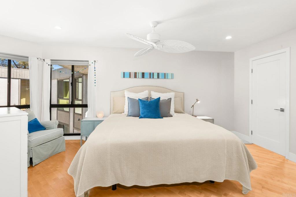 *NOW WITH IN-UNIT LAUNDRY!!!* Just three blocks from Coronado’s world-famous Center Beach and moments to the heart of the Village, 909 Olive offers an exceptional blend of location, design, and livability. Bathed in natural light by picture windows that invite the outdoors in, this top-of-the-line remodeled townhome was completely redesigned and rebuilt in 2019 with architectural guidance by Kevin Rugee. The open-concept kitchen anchors the main living space with a large quartz island ideal for casual dining and entertaining. A sleek coastal aesthetic is carried through custom shaker cabinetry, white subway tile backsplash, shiplap accent wall, and premium appliances including a built-in European-style Bosch refrigerator and Fisher & Paykel drawer dishwasher. Maple engineered hardwood floors, smooth-finish walls, and integrated smart features, including blinds, lighting, and a garden fountain, elevate the interiors, while three mini-split systems provide efficient heating and air conditioning. Upstairs, the master suite features a spacious walk-in closet with Elfa shelving and a beautifully updated bath with custom tile and glass-enclosed shower and Toto bidet toilet. The secondary bedroom offers dual closets for added storage and flexibility. Outside, a large English garden patio with retractable awning creates a private, tranquil retreat, a rare find at this price point. From the inviting mahogany Dutch door to the extensive quality upgrades carried throughout, every detail reflects thoughtful quality creating a turnkey coastal home in the heart of the Village.