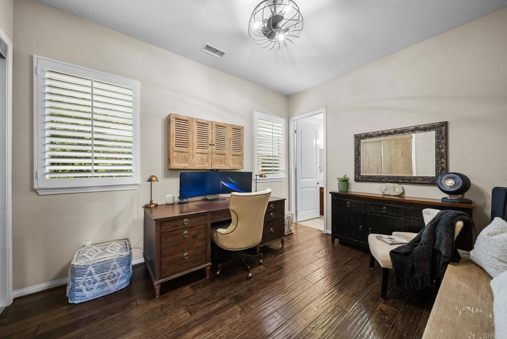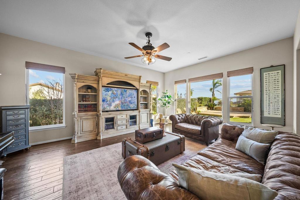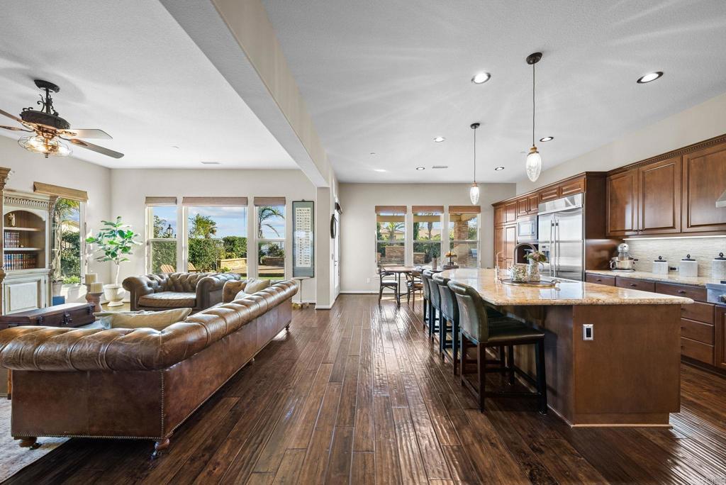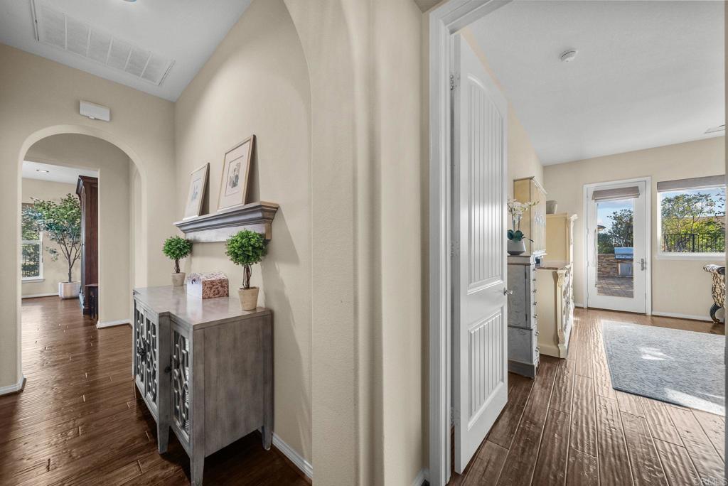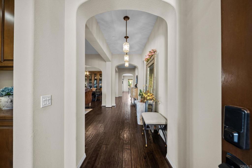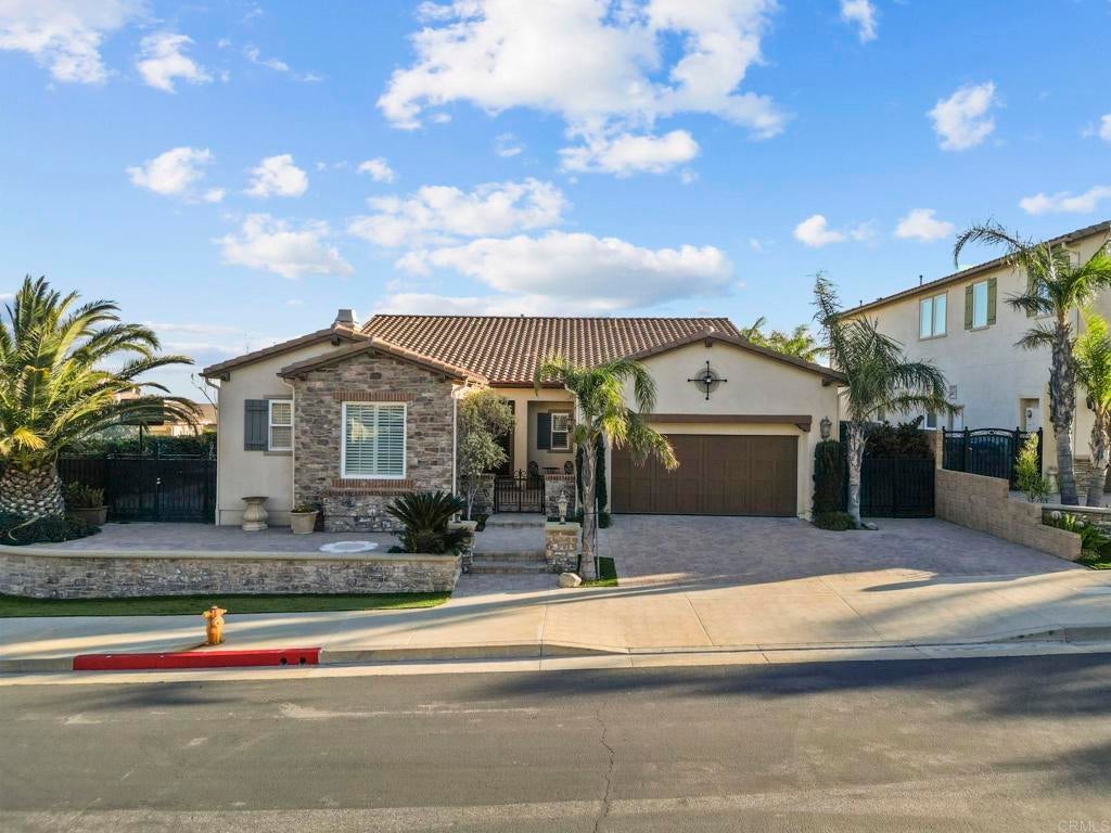 Welcome to The Renaissance, a 24-hour guard-gated community in Porter Ranch. Perched on a corner lot atop the hills, this single-story home offers peek-a-boo valley views and privacy with no neighbors directly behind it. Inside, 10-foot ceilings and engineered wood floors flow throughout, complemented by a desirable split-bedroom layout with a private primary suite. A separate wing with two additional bedrooms provides flexibility for guests, multigenerational living, or a dedicated home office. Designed for both functionality and entertaining, the backyard features a covered patio, built-in BBQ and fire pit, mature landscaping, and a spacious side yard. Located within the highly rated Porter Ranch Community School district and minutes to parks, scenic trails, and the shops and restaurants at The Vineyards at Porter Ranch, this rare single-story home offers a seamless blend of everyday convenience and refined comfort.