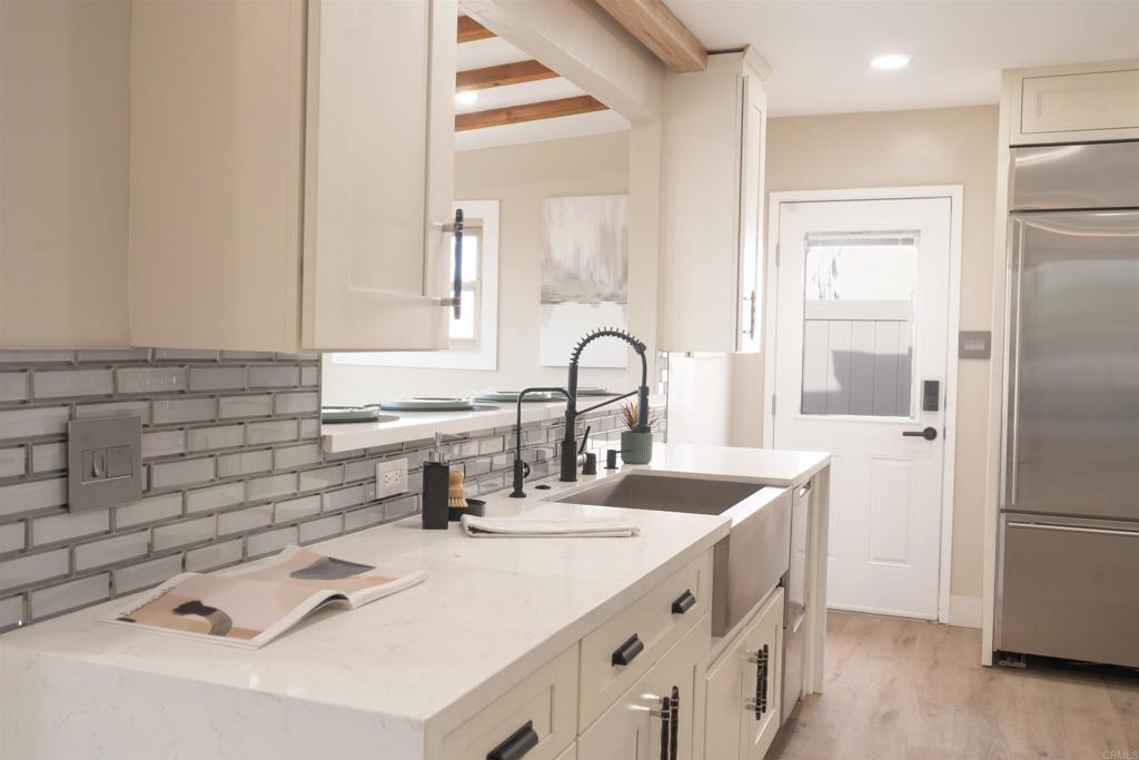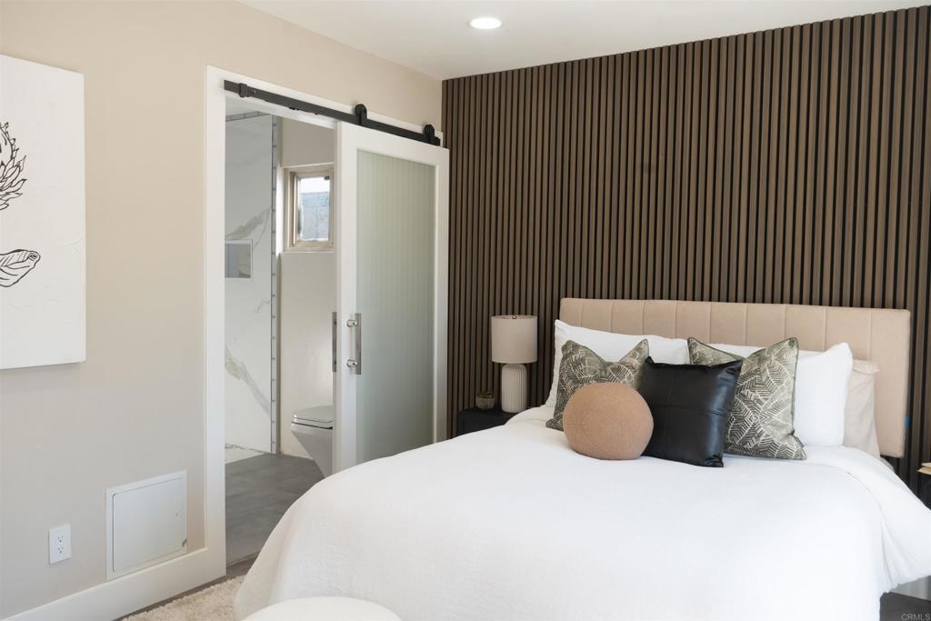 Welcome to your Oak Park masterpiece! Fully remodeled home tucked away in a quiet, beautiful cul-de-sac, offering privacy, style, and the ultimate San Diego indoor-outdoor lifestyle. This stunning 3-bedroom, 2.5-bath residence has been thoughtfully redesigned with a modern open-concept layout that flows effortlessly throughout the entire home. At the heart of the home is a custom chef’s kitchen featuring high-end finishes, a double oven, double refrigerator, and double dishwasher — perfect for entertaining or hosting large gatherings with ease. The living space opens seamlessly through expansive bifold doors to an incredible backyard designed for entertaining. Enjoy two separate levels of outdoor living. The lower level features a beautiful pool with surrounding space for lounge chairs where you can relax and soak up the San Diego sunshine. The upper level offers a covered patio that connects directly to the home through bifold doors and a stylish indoor-outdoor bar, creating the perfect setting for gatherings, game days, or sunset evenings with friends. The primary suite is its own retreat, featuring private access that walks you directly out to the patio — the perfect spot to start your morning or unwind at the end of the day. Homes like this rarely become available — a fully remodeled showpiece in an intimate cul-de-sac setting designed for both everyday living and unforgettable entertaining.
