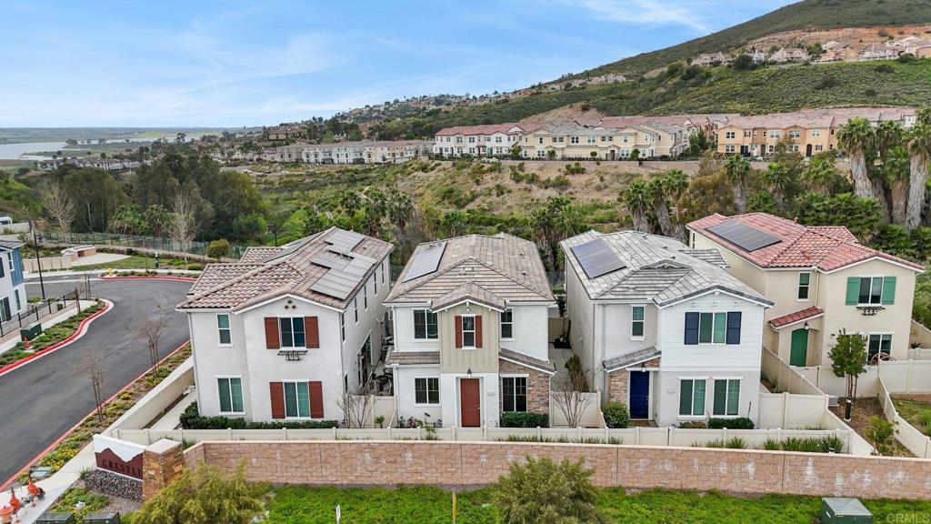 Welcome to your impeccably designed 2022 KB Home featuring fully paid solar, modern construction, and an open-concept layout with thoughtful use of space. This 3 bedroom, 3 bathroom home features upgraded flooring, expansive windows that fill the home with natural light, and a seamless open-concept design perfect for entertaining or relaxing at home. Views of the canyon and reservoir are available from the upstairs, taking full advantage of this idyllic and central location! The spacious main living area flows effortlessly into the kitchen and dining space, creating a functional layout ideal for gatherings and everyday living. Fully paid solar provides long-term energy savings, while newer construction means modern systems, updated finishes, and low maintenance. The granite counter tops, stainless steel appliances, large central island and spacious pantry make this a perfect heart for the home! The upstairs features a bonus loft space that creates separation between the primary and guest bedrooms, with washer and dryer in the laundry room on the same level. Primary bedroom features a built-in desk, accent wall, walk-in closet, shower and spa style bathtub. Located in the Crestline community with great neighborhood amenities that include playgrounds and grills, this home combines comfort, convenience, and value. Enjoy easy access to shopping, dining, parks, and freeways, all while being less than 20 minutes from Downtown San Diego. For buyers looking for a move-in ready newer home in San Diego County without the premium price tag, this is your opportunity to own your own slice of paradise!