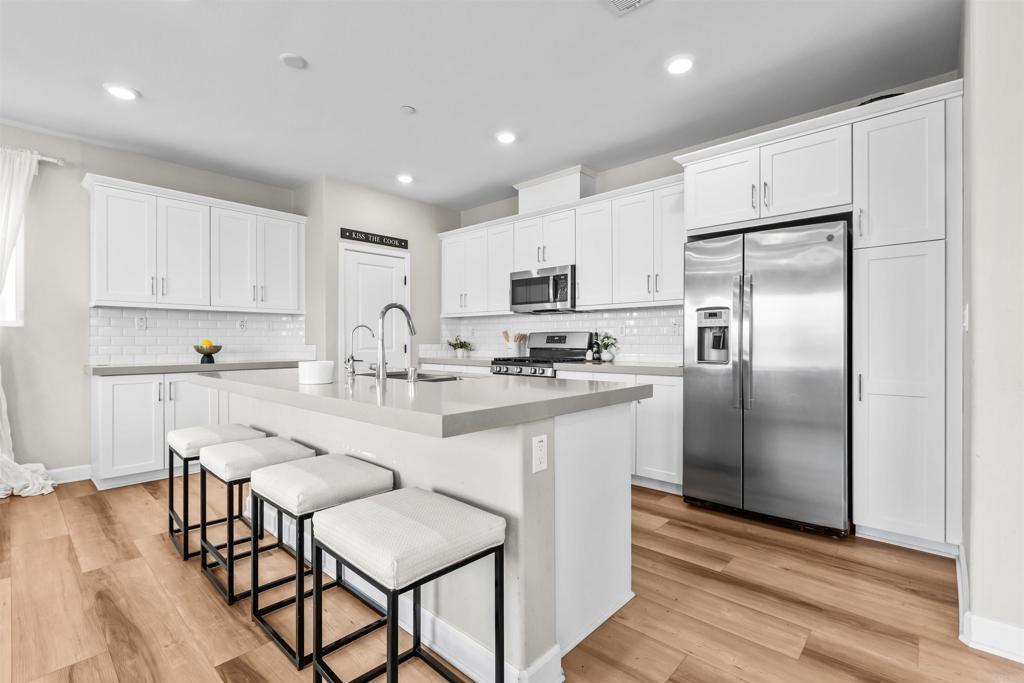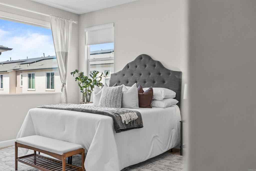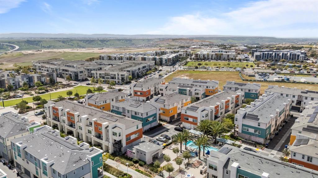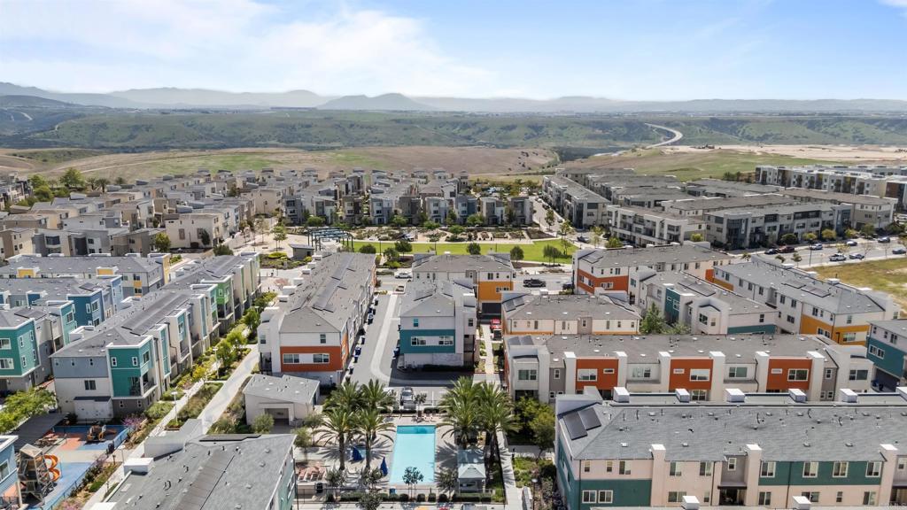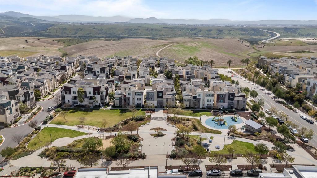 PRICE IMPROVEMENTS | CORNER UNIT | POOL VIEWS | ONLY ONE SHARED WALL | FHA & VA APPROVED Experience modern living at its finest in this exceptional corner townhome nestled in the highly desirable Millenia community of Otay Ranch. Rarely available and thoughtfully designed, this three-story residence offers the perfect blend of style, functionality, and comfort. From the moment you enter, you’re welcomed by a light-filled open floor plan that seamlessly connects the main living spaces. The chef-inspired kitchen is the heart of the home, featuring sleek quartz countertops, timeless shaker cabinetry, stainless steel appliances, and an oversized island—ideal for gathering and entertaining. Expansive windows invite an abundance of natural light, while the private balcony provides tranquil pool views and showcases a striking custom stacked-stone accent wall, adding warmth and character to the living space. Designed with efficiency in mind, the home includes paid solar, a tankless water heater, and a water softener system—offering long-term savings and sustainability. The versatile first floor features a private bedroom and full bath with its own patio, perfect for guests, extended family, or a dedicated workspace. Upstairs, retreat to the spacious primary suite complete with a walk-in closet and a spa-like en-suite bathroom. Two additional bedrooms and a conveniently located laundry area complete the upper level. Enjoy the convenience of a 2-car attached garage and the lifestyle amenities of Millenia, including a resort-style pool, beautifully maintained parks, dog park, playgrounds, and a community garden. Ideally located just minutes from Otay Ranch Town Center, top-rated dining, shopping, and easy freeway access—this home truly offers the best of comfort, convenience, and community living.