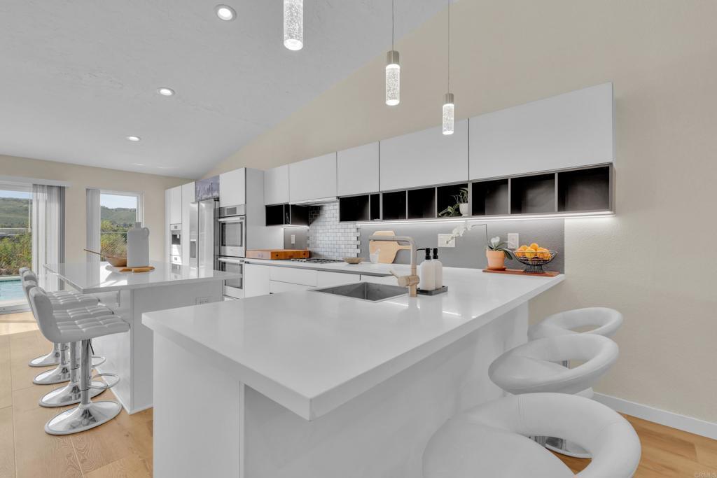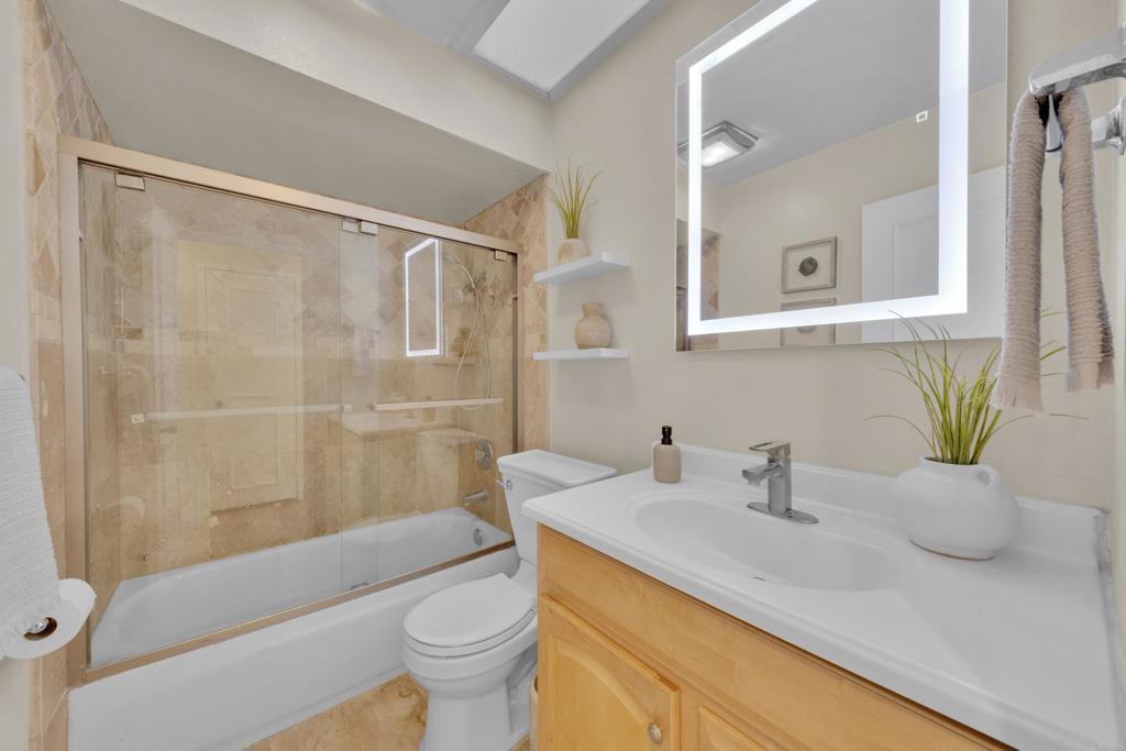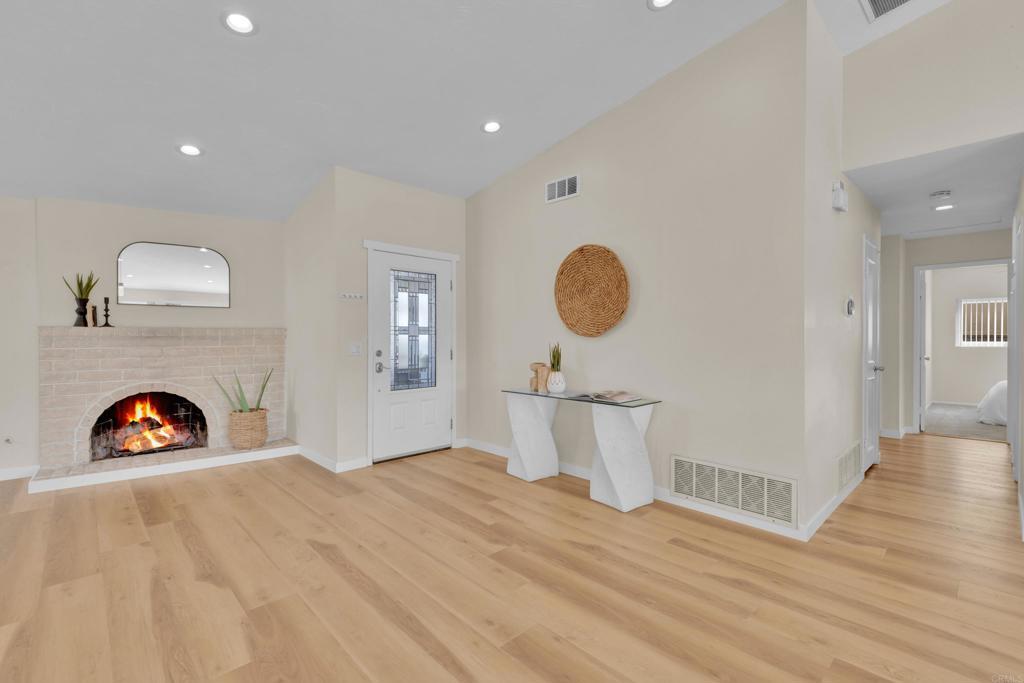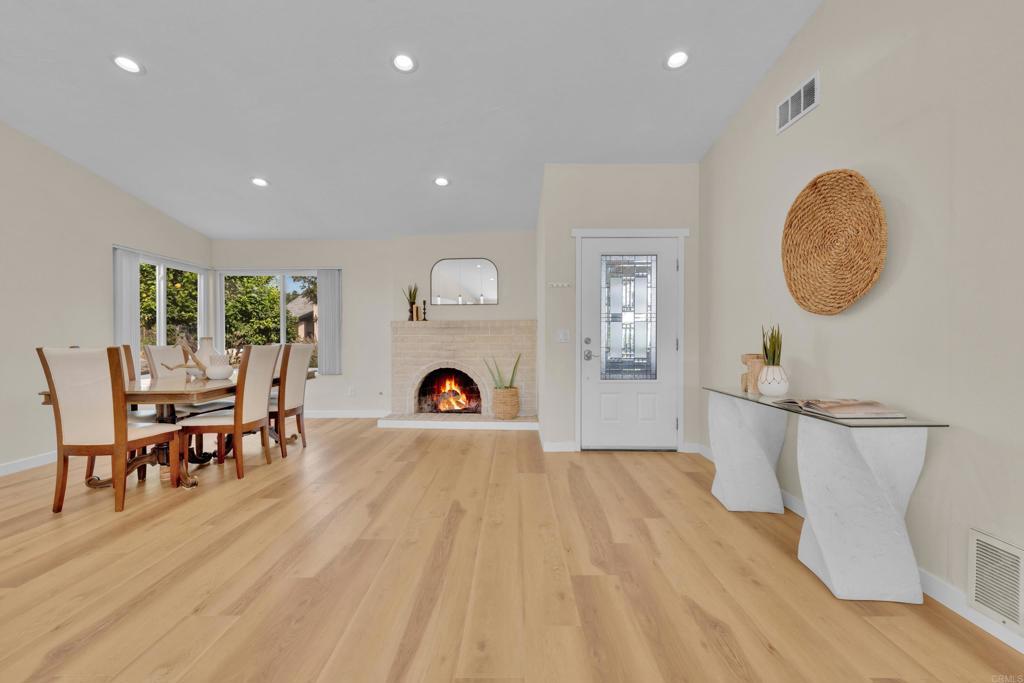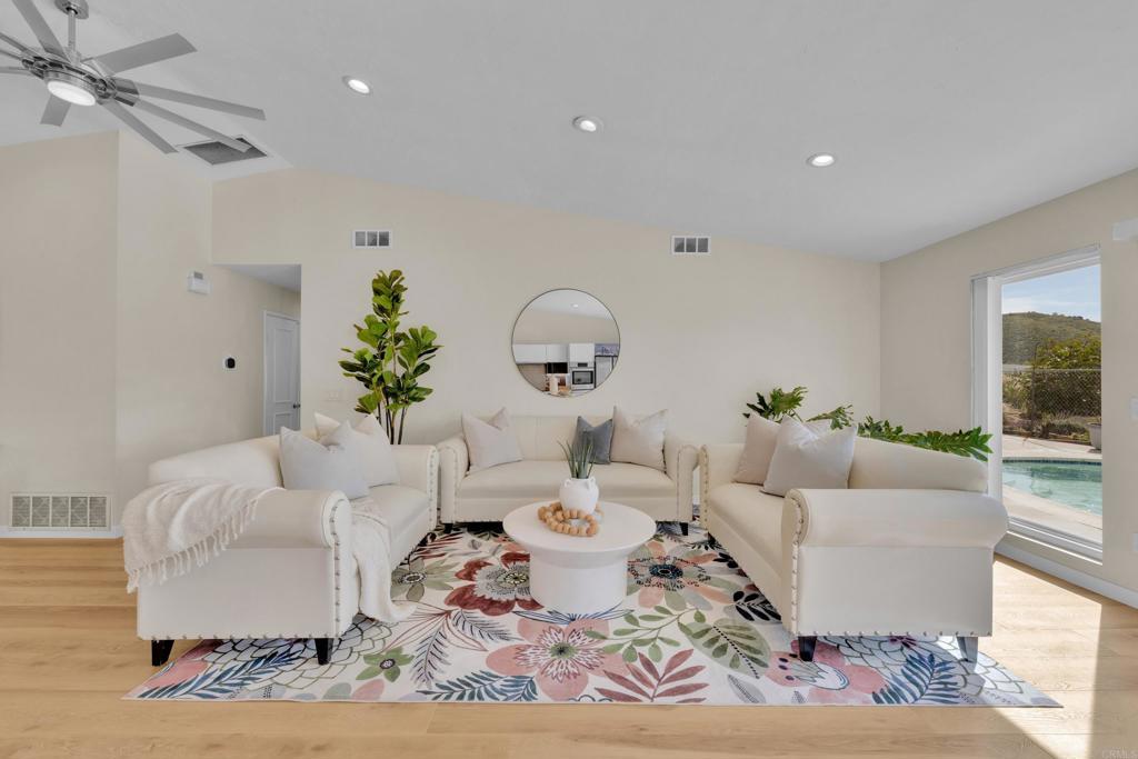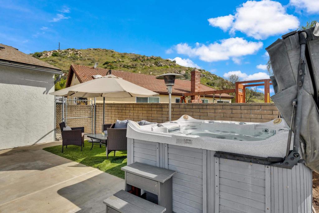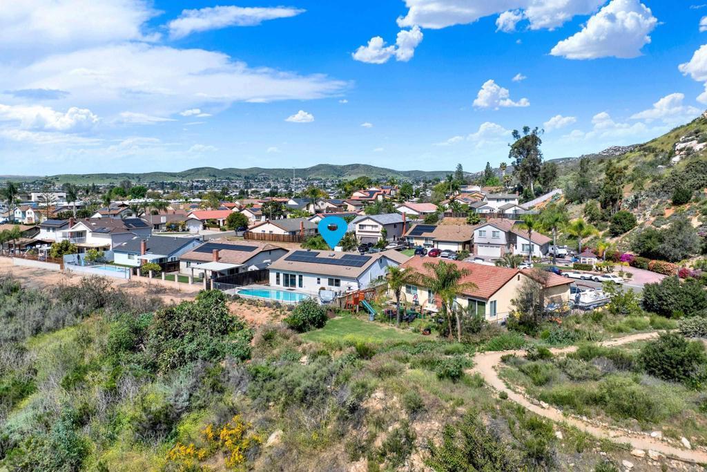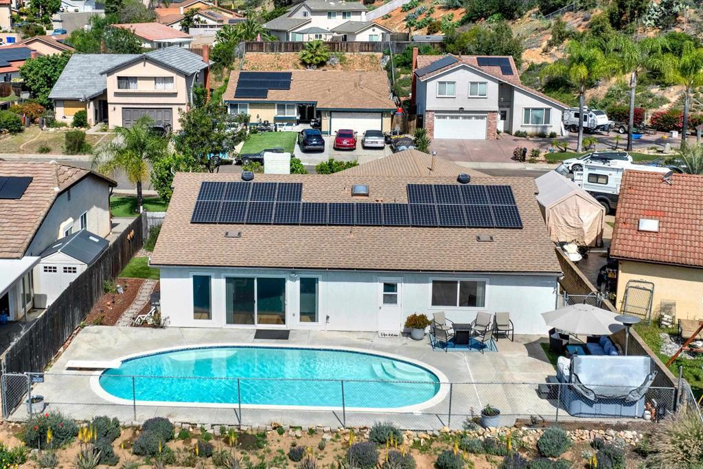 Welcome to 11033 Hillcreek Road, a beautifully sleek 5 bedroom home with a sparkling pool and amazing views. The home backs up to the walker trail preserve, so no one behind you but the peace and serenity of nature as you sit by the pool for a morning dip, or just take in the songs of the birds with your coffee. You will love the new kitchen with high end stainless steel appliances and built in espresso/coffee maker, warm fireplace, and modern organizational closet system with interior lighting throughout. Features include, a separate spa and many mature fruit trees, soothing front fountain water feature. Energy efficient with a fully paid solar system, whole house fans, Attic with an auto gable fan, whirly bird ventilation, R-30 insulation in attic, Low-E windows, tankless water heater, and low energy IntelliFlo pool pump. New A/C and separate mini split in 5th room. Roof and Solar are approximately 7 years old. 5th bedroom is a garage conversion and can easily be converted back to a garage if desired. Just steps away from the walking trails and Hillcreek Elementary School. Close to highways, and shopping. You will fall in love with this home, tucked away in one of Santee's coveted hidden gem neighborhoods.