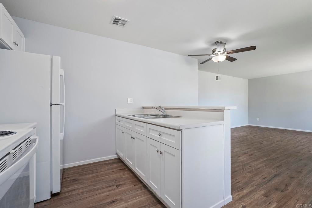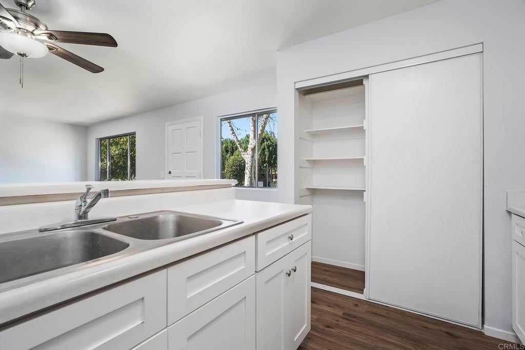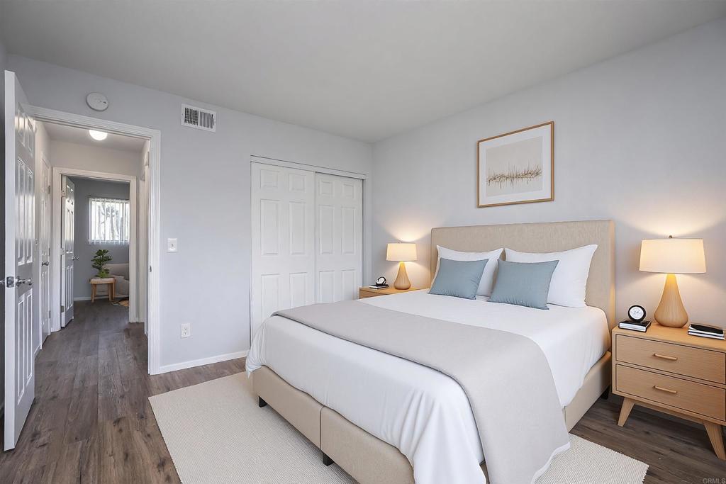 BEAUTIFULLY UPGRADED 2 BEDROOM, 1 BATH SINGLE STORY CONDO IN LAKESIDE AND THIS ONE FEATURES WOOD LAMINATE FLOORING, FRESHLY PAINTED INTERIOR, RE-TEXTURED CEILINGS, REMODELED KITCHEN WITH SOLID SURFACE COUNTERS, RAISED PANEL DOORS, NEWER FORCED A/C AND HEAT, SPACIOUS LIVING ROOM WITH LOTS OF WINDOWS, CORNER UNIT ON A CUL-DE-SAC, UPDATED BATHROOM WITH TILED SHOWER, CEILING FAN, 1 CARPORT AND 1 UNCOVERED SPACE. CLOSE TO SHOPPING, SCHOOLS , FREEWAY, VA APPROVED COMPLEX AND MUCH MORE. SOME PHOTOS HAVE BEEN VIRTUALLY STAGED.