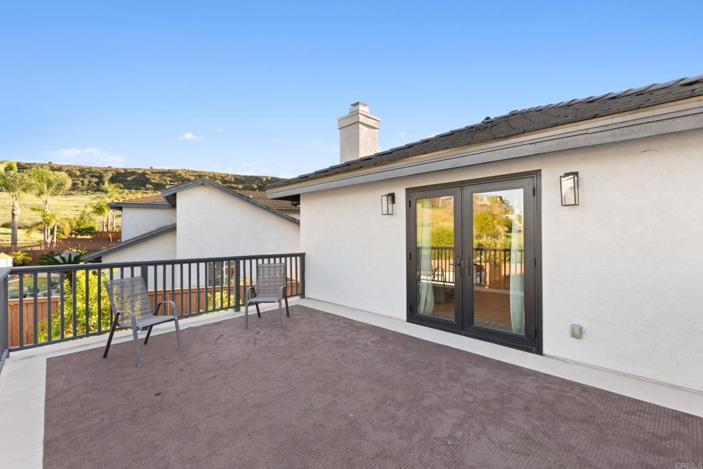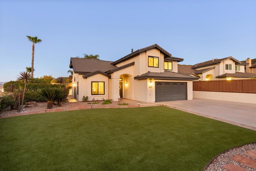 NO HOA! SANTEE STUNNER ON NEARLY HALF AN ACRE WITH VIEWS! Tucked at the end of a quiet cul-de-sac on a desirable corner lot, this beautifully upgraded home is an entertainer’s dream featuring sweeping panoramic hillside views and a resort-style backyard built to impress with a solar-heated pool and spa, gas fire pit, built-in BBQ, covered patio, and FIVE outdoor TVs—perfect for indoor-outdoor living, hosting gatherings, or enjoying game day in your own private oasis with fruit trees. The home also offers fully paid solar and over $100K in recent upgrades, including a new roof, dual-pane windows, updated flooring, newer A/C, and fresh interior and exterior paint. Step inside to soaring ceilings and a spacious chef’s kitchen featuring granite countertops, a large center island, double ovens, and stainless-steel appliances, all opening to bright, open-concept living spaces filled with natural light. The highly desirable floor plan includes a full bedroom and bathroom on the main level, ideal for guests or multigenerational living. Upstairs, the luxurious primary suite offers a private view balcony, spa-like bathroom with an oversized soaking tub, and a bonus room perfect for a home office, nursery, or flex space, plus two additional bedrooms. Additional highlights include RV parking, an oversized garage, energy-efficient features, and two whole-house fans. This rare property offers space, privacy, modern upgrades, and true Southern California lifestyle living.