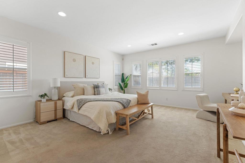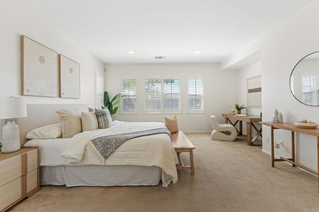 Welcome to effortless single story living in one of Eastlake's most desirable communities. This beautifully appointed 3-bedroom, 3.5-bath home offers 2,524 square feet of thoughtfully designed space where classic architecture meets everyday comfort. Every bedroom is a private retreat, each featuring its own ensuite bath, ideal for families, guests, or multigenerational living. High ceilings and an open floor plan create an airy, light filled atmosphere that feels both grand and welcoming, perfect for entertaining or relaxing at home. Single story homes of this size are a true rarity in Eastlake, and this one checks every box. Paid solar means dramatically reduced energy costs from day one. No lease, no transfer fees, just savings. A low HOA keeps the community well-maintained without the premium price tag. Beyond your front door, Eastlake delivers an exceptional lifestyle. Enjoy easy access to Otay Ranch Town Center's dining and shopping, scenic trails around The lakes, the Eastlake Country Club, and convenient freeway access to downtown San Diego and the border. Homes like this; spacious, single-story, solar-owned, and in this location... don't come around often. Come see why Eastlake continues to be one of the South Bay's most beloved communities.